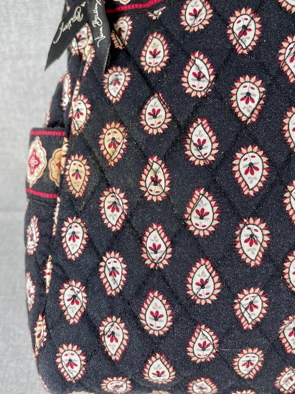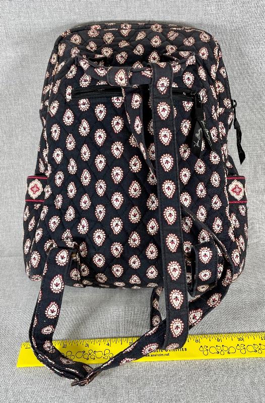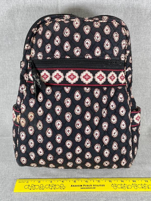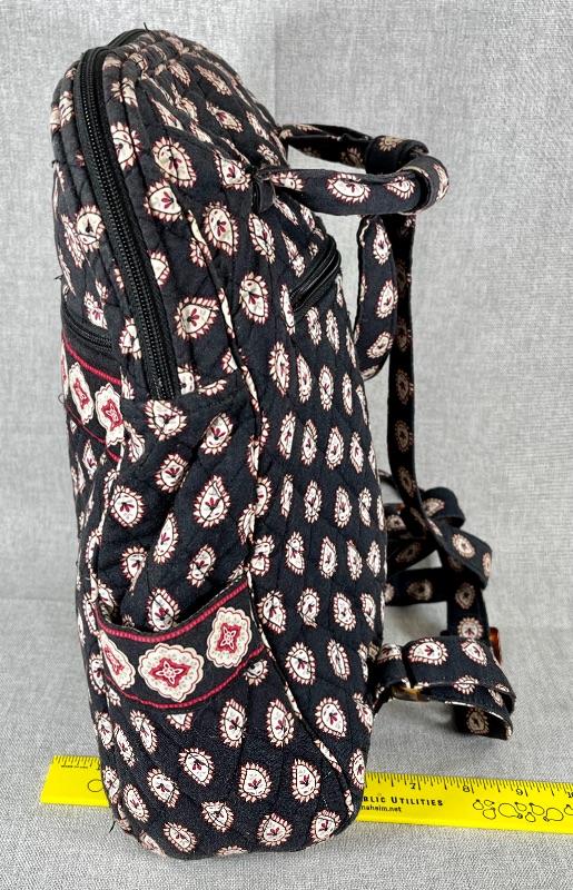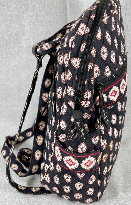 Retired Vera Bradley CLASSIC BLACK backpack. Multiple zipper pockets. There is a stain on the side, not sure how well it might come out when washed. #020-02212a5