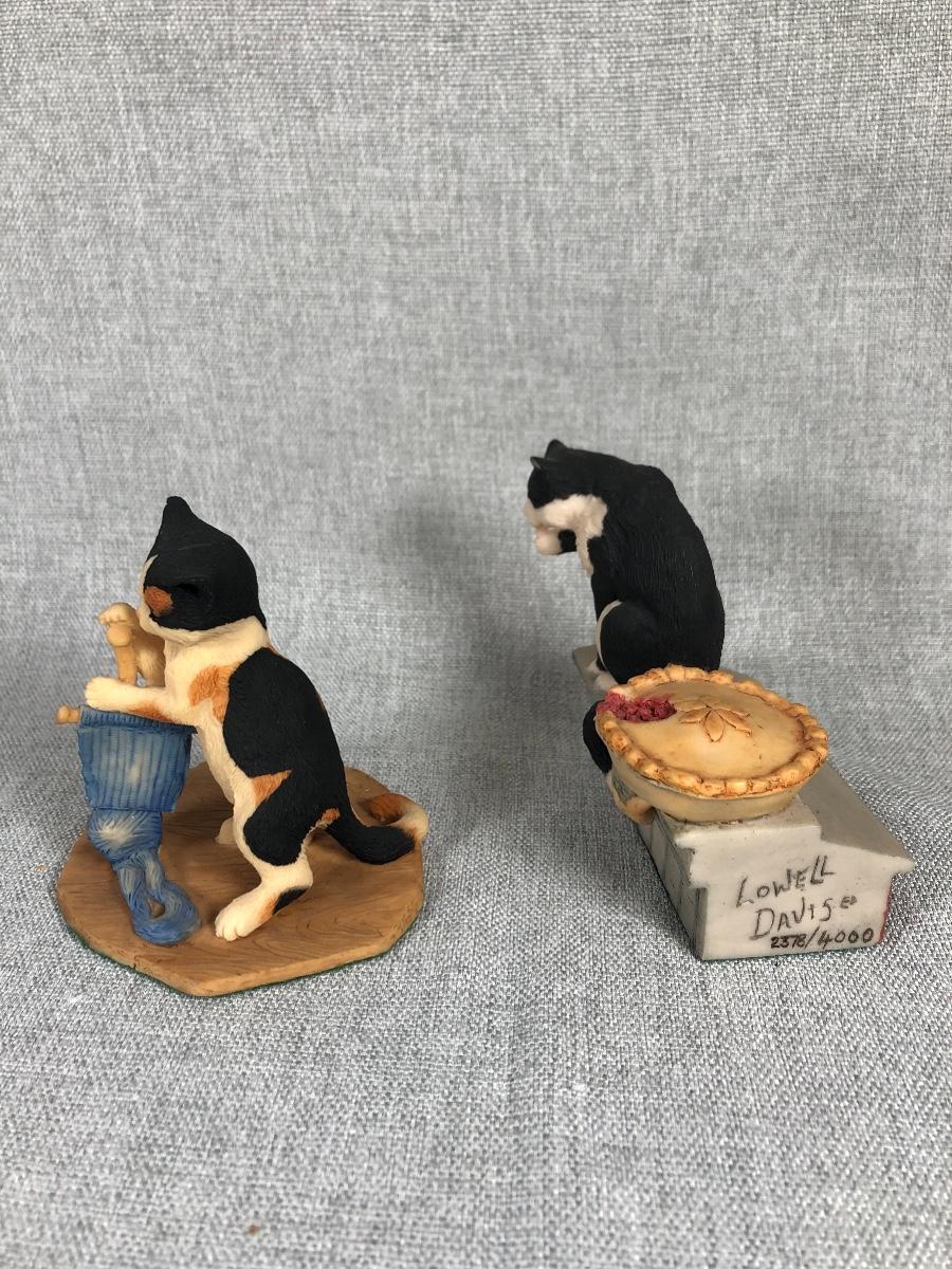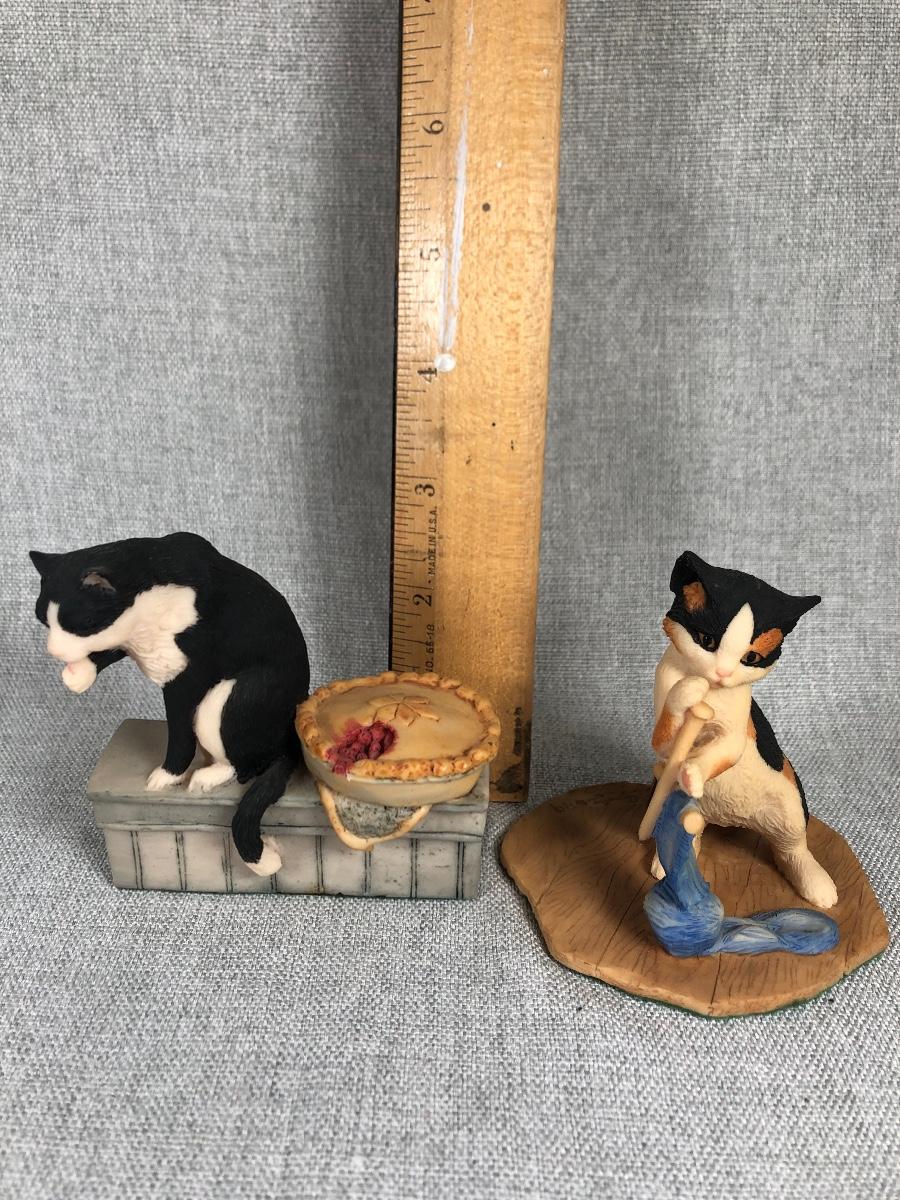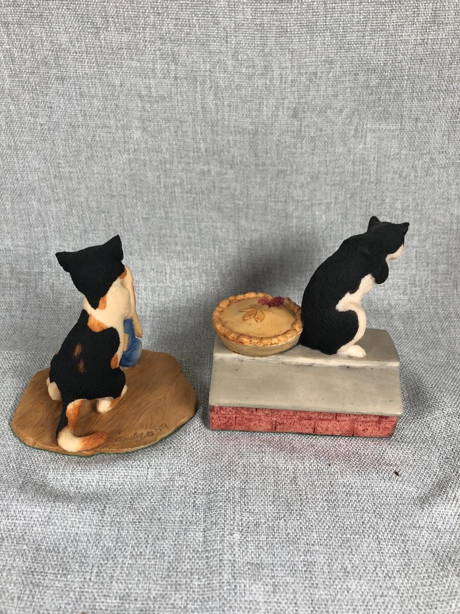 Pair of cat figurines. Cute multicolored cats. Both in good condition, tags on the bottoms. About 3" size.