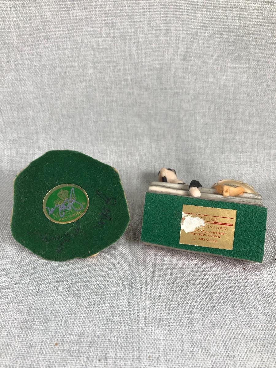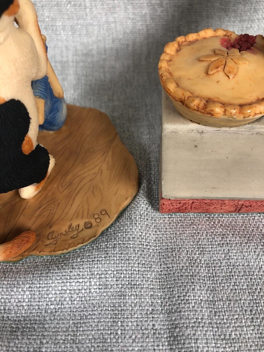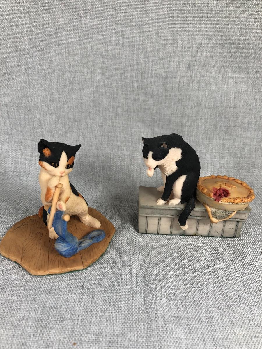 Pair of cat figurines. Cute multicolored cats. Both in good condition, tags on the bottoms. About 3" size.