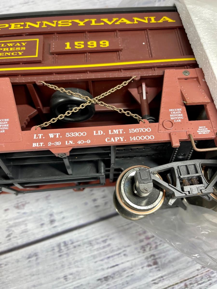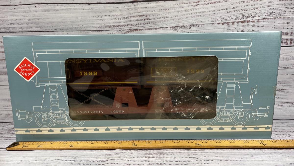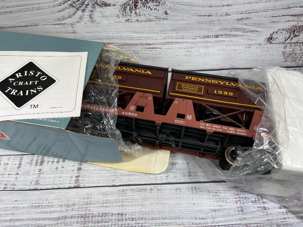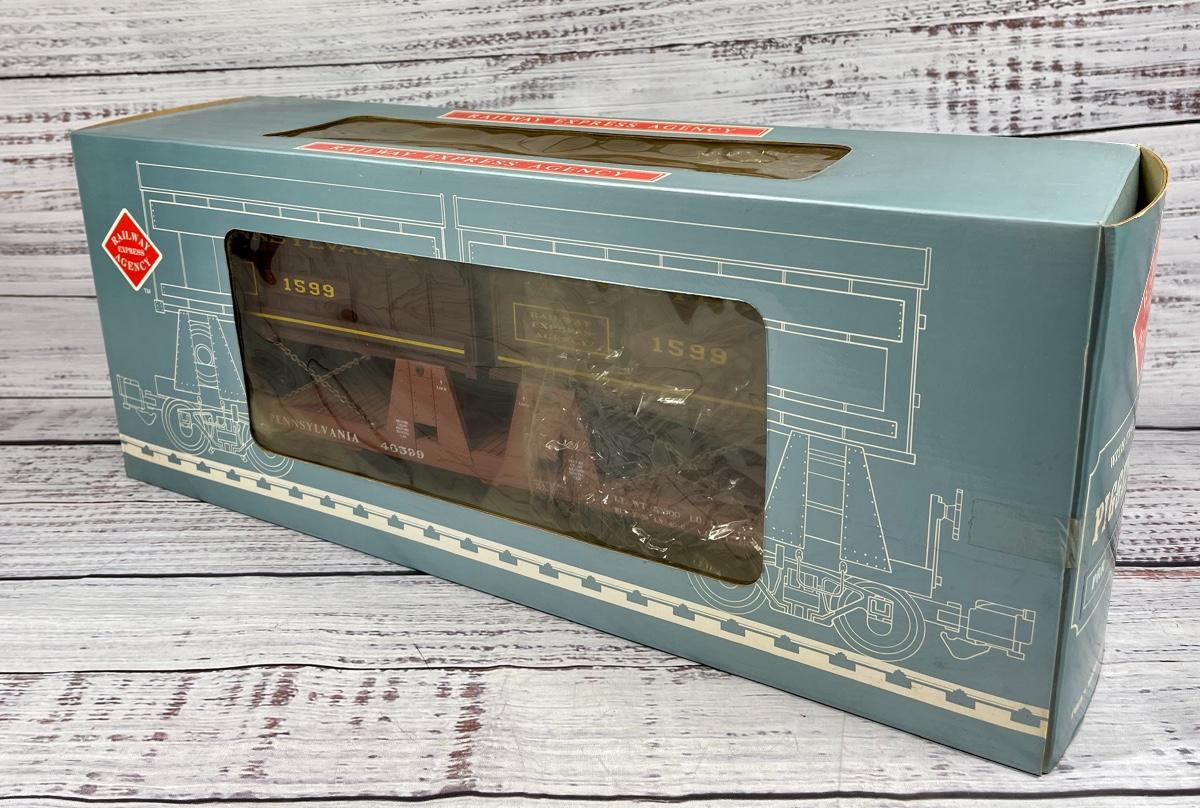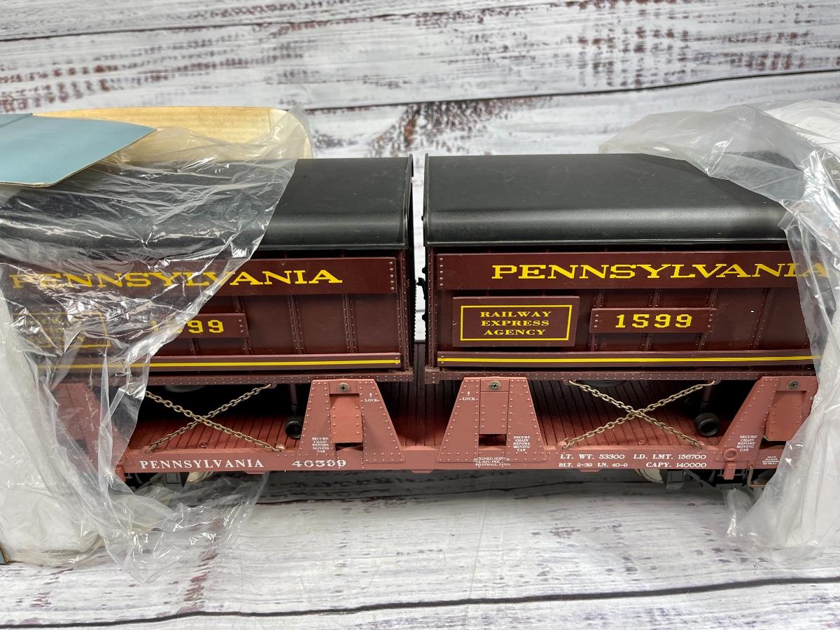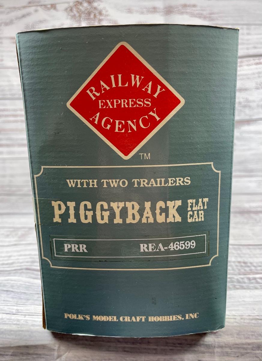 RAILWAY EXPRESS AGENCY Piggyback Flat Car w/ Two Trailers G scale train car PRR REA-46594