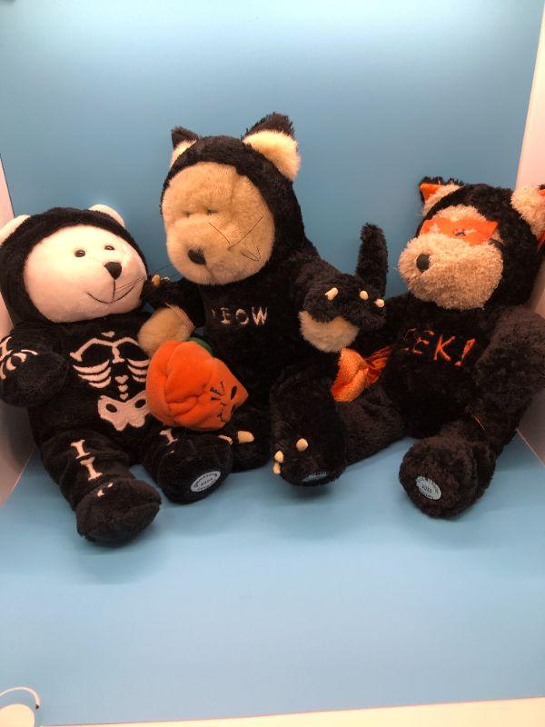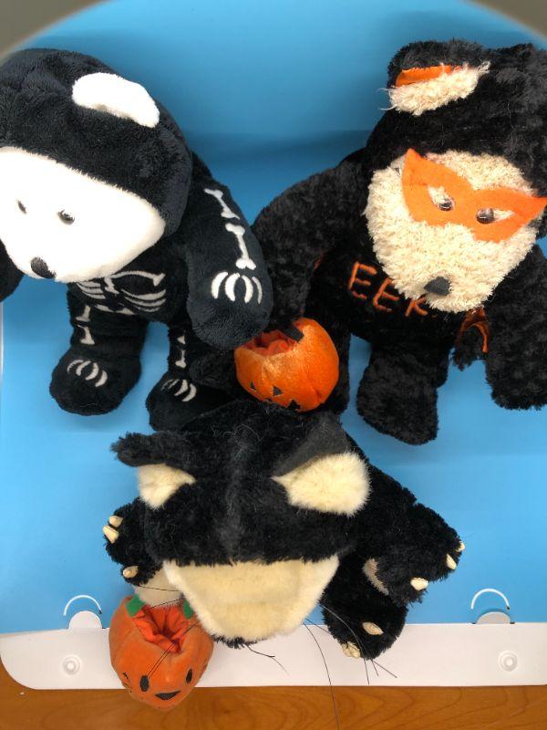 Set of 3 Halloween themed plush animals. Looks like bears dressed up for trick or treating. Good condition.