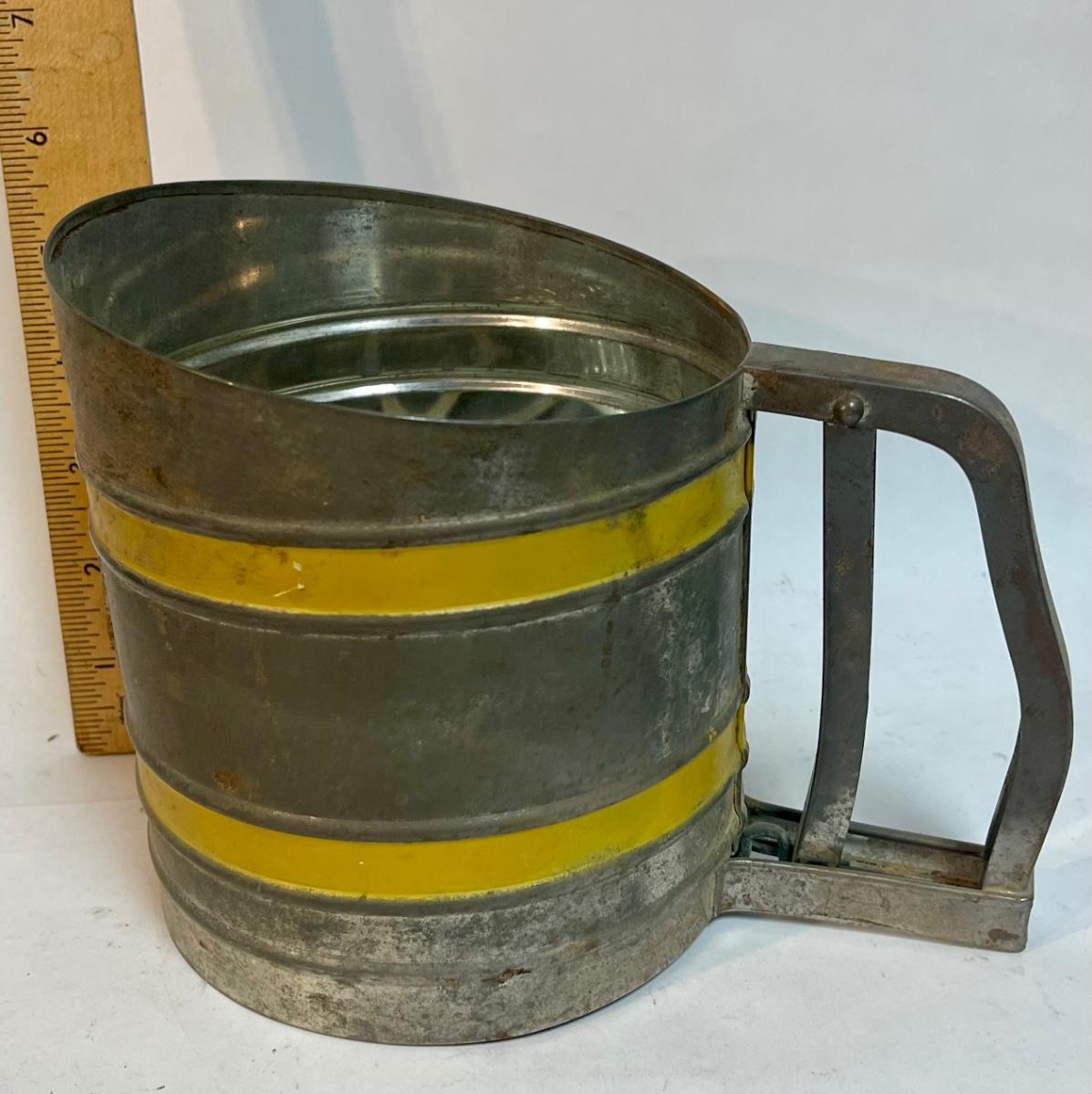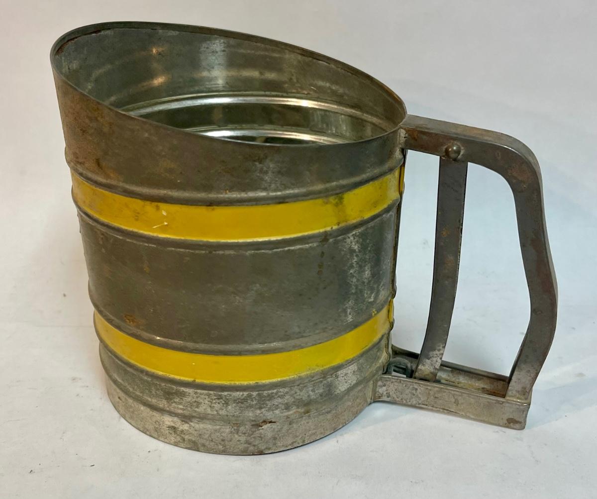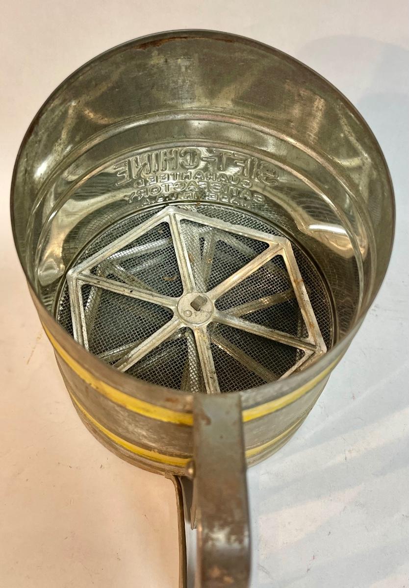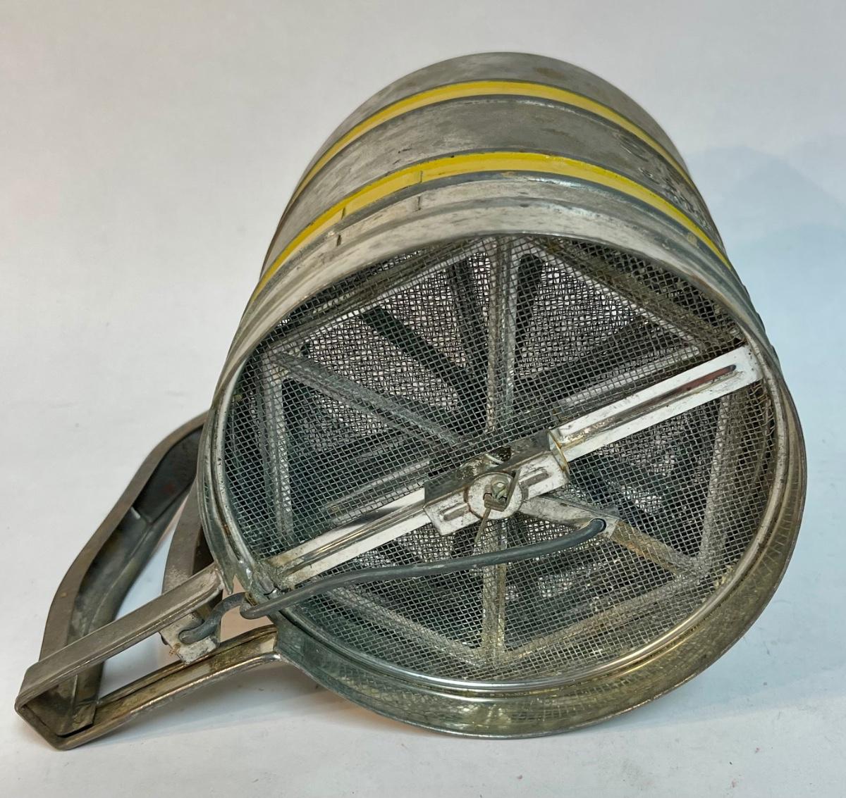 Sift Chine double screen flour sifter with yellow bands vintage working