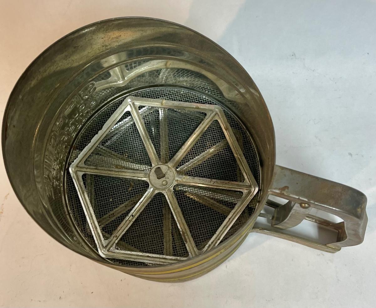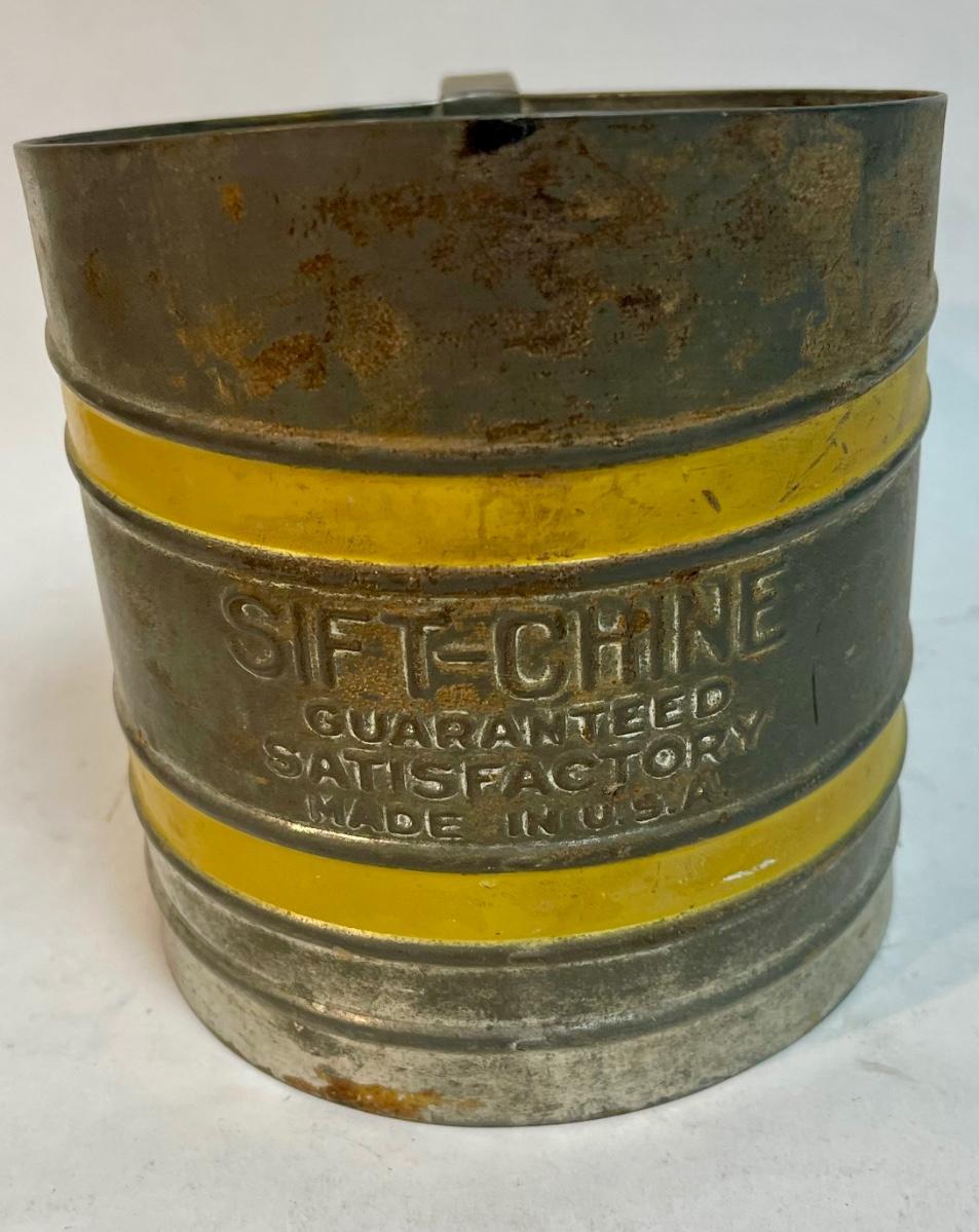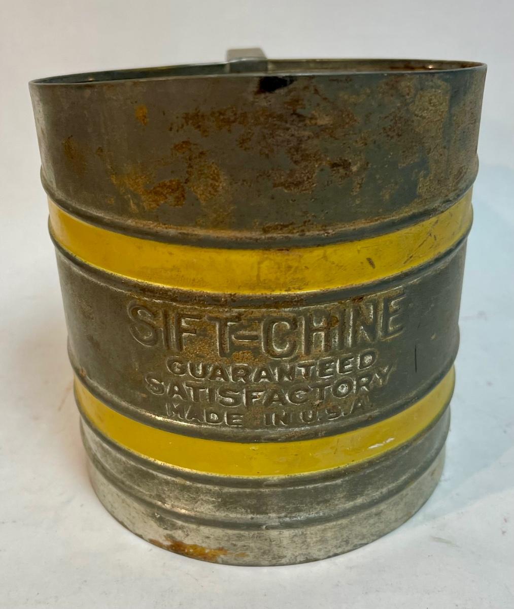 Sift Chine double screen flour sifter with yellow bands vintage working