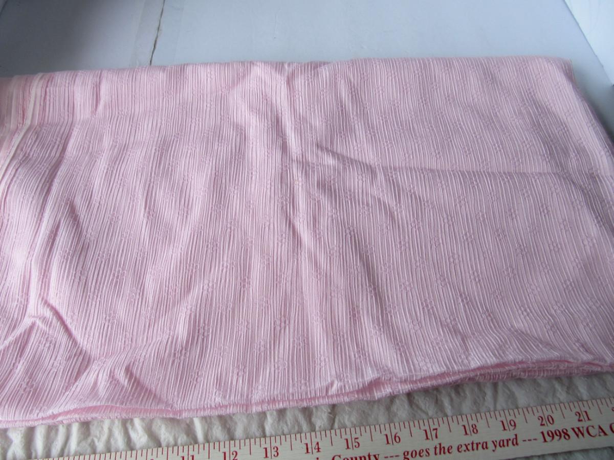 The teal is a remnant but enough for like a tank top or lots of doll clothes. It is about 26" x 42". The pink is about 44" x 88" and the dark purple is about 44" x 58". The other two are large sections. Pink ribbon is a small remnant, and a small traveling sewing kit. All in good shape. Shipping is available at actual shipping cost plus $5.00 handling fee per box for supplies/labor. See our terms for details. All sales are final. Condition notes may not be all inclusive, we may miss some issues as most vintage items are not in mint condition and have some degree of wear, paint loss, etc, but we always try to note obvious damage.