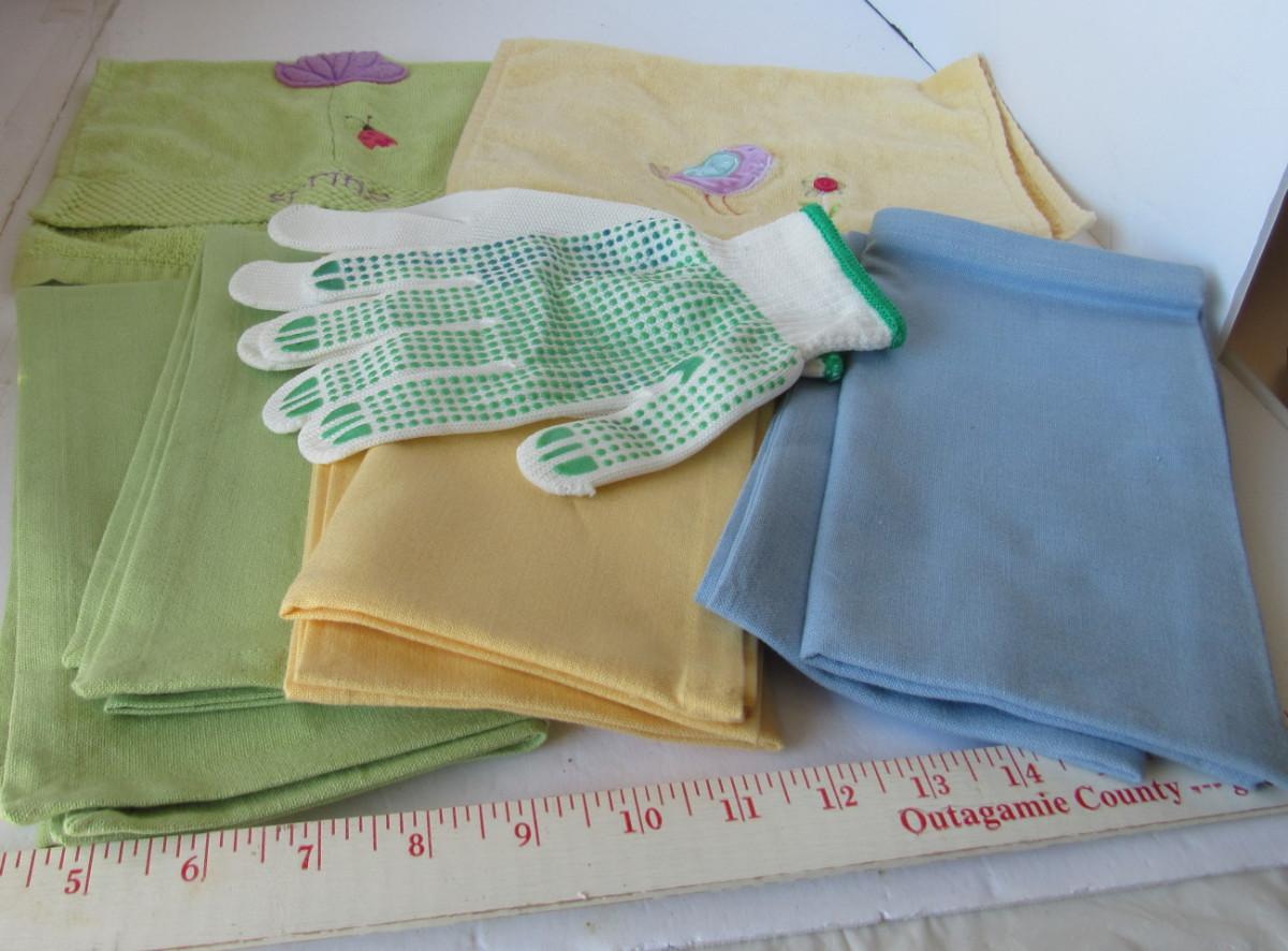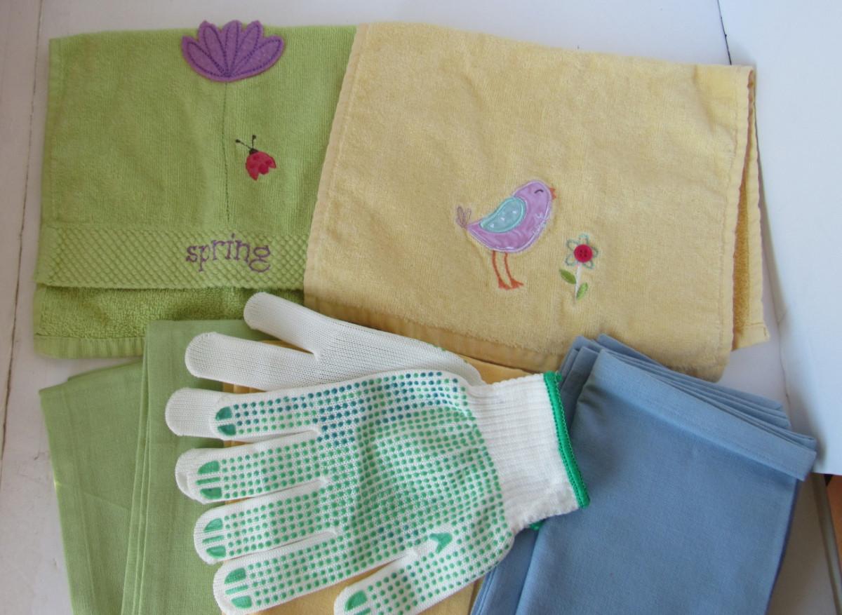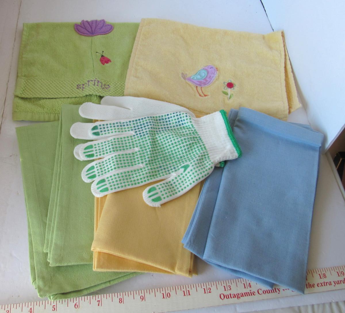 Nice Unused and Barely Used Pastel Towels and Garden Gloves