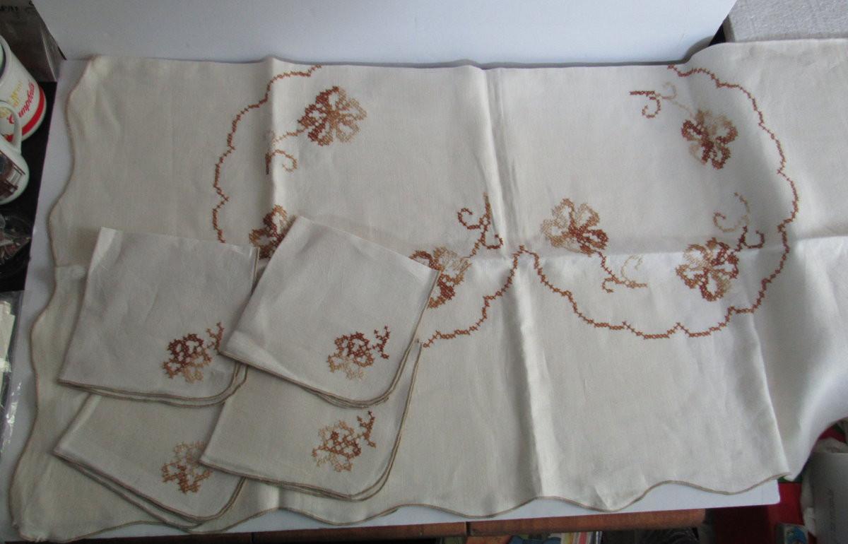 Matching Set Older Handmade Tablecloth and 4 Napkins Set