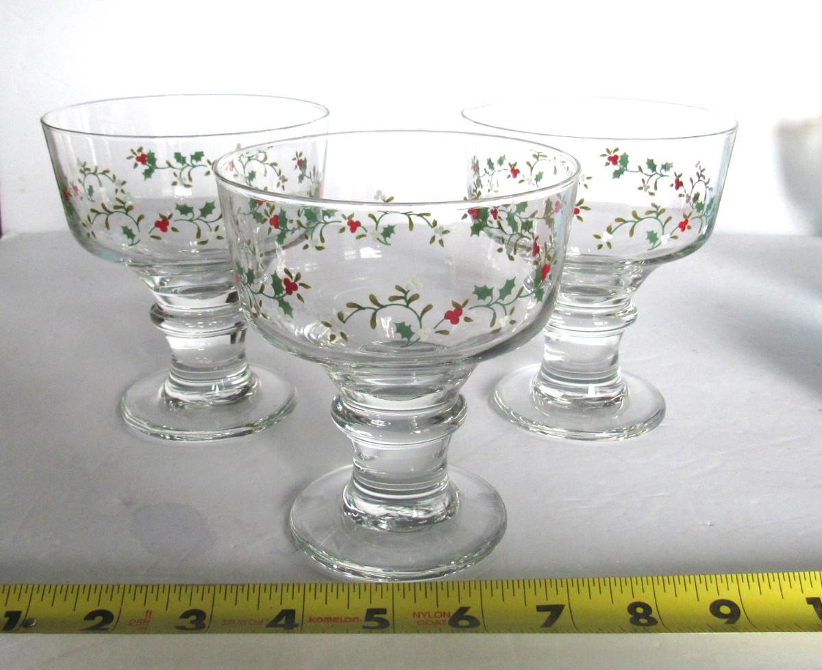 Older Glass Ice Cream or Dessert Glasses, Pfaltzgraff Winterberry Pattern