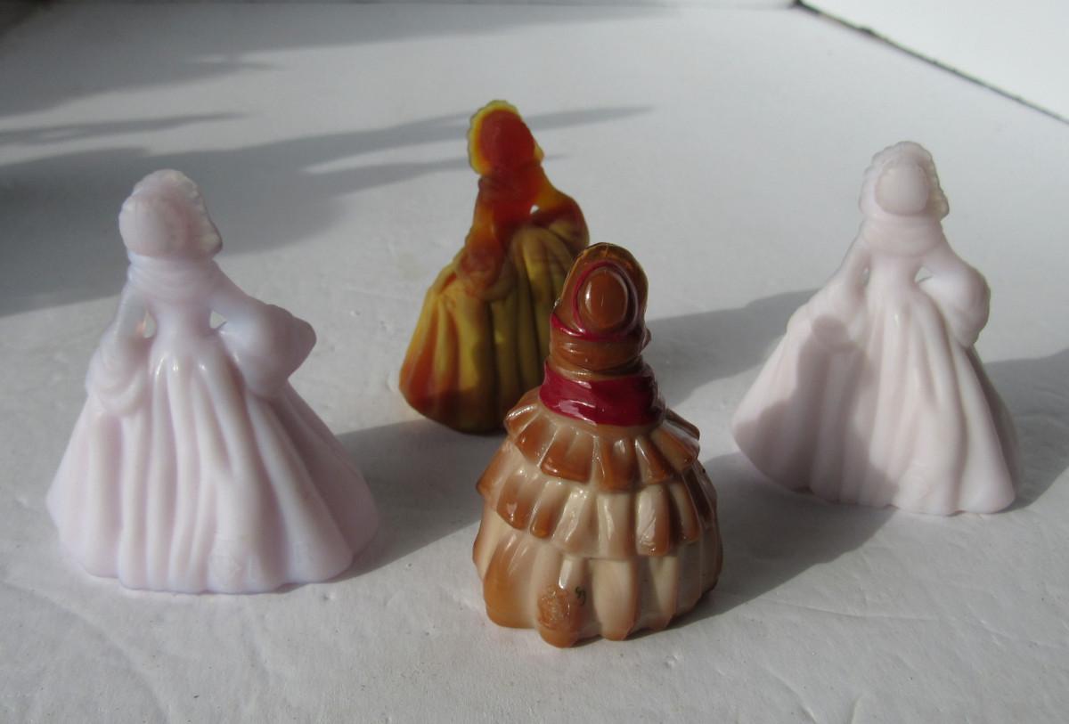 4 Older Boyd Glass Dolls, One is Hand Painted, 3 Are Satin Glass