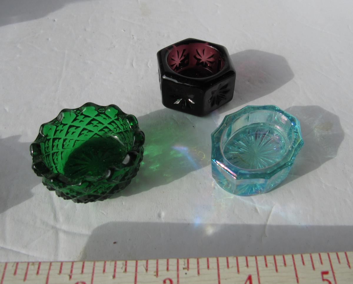 3 Older Mosser Glass Colored Salt Dips