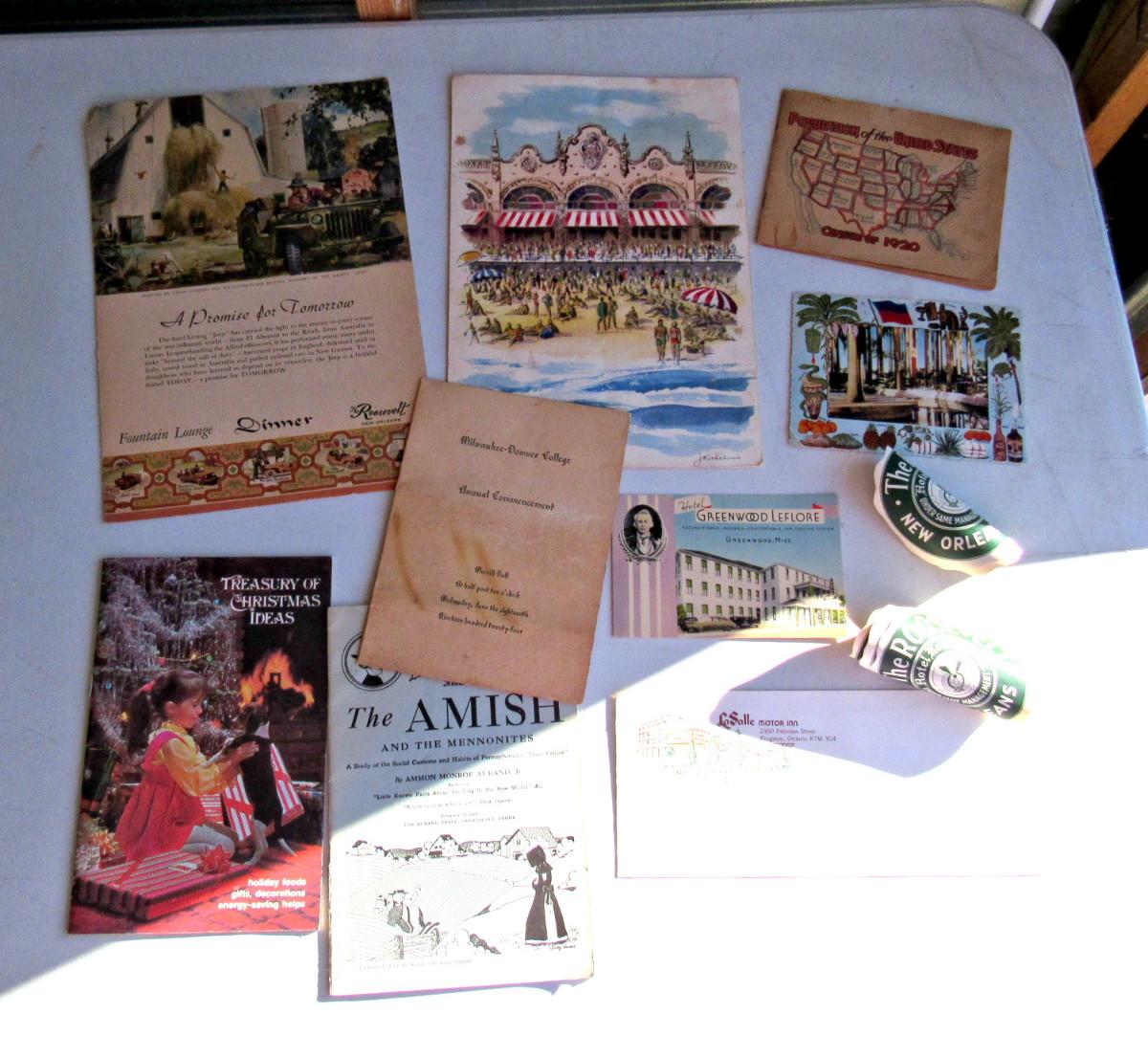 Lot of Vintage Travel Ephemra: Hotel Menus, Stickers, Postcards, Etc