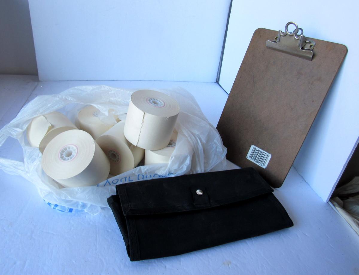 Adding Machine Rolls, Small Clip Board, Money Pouch