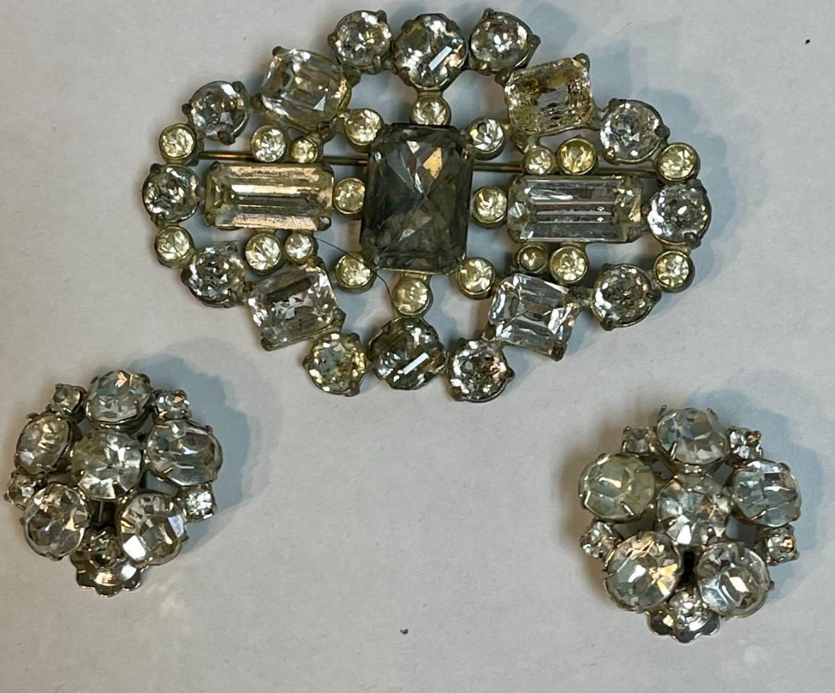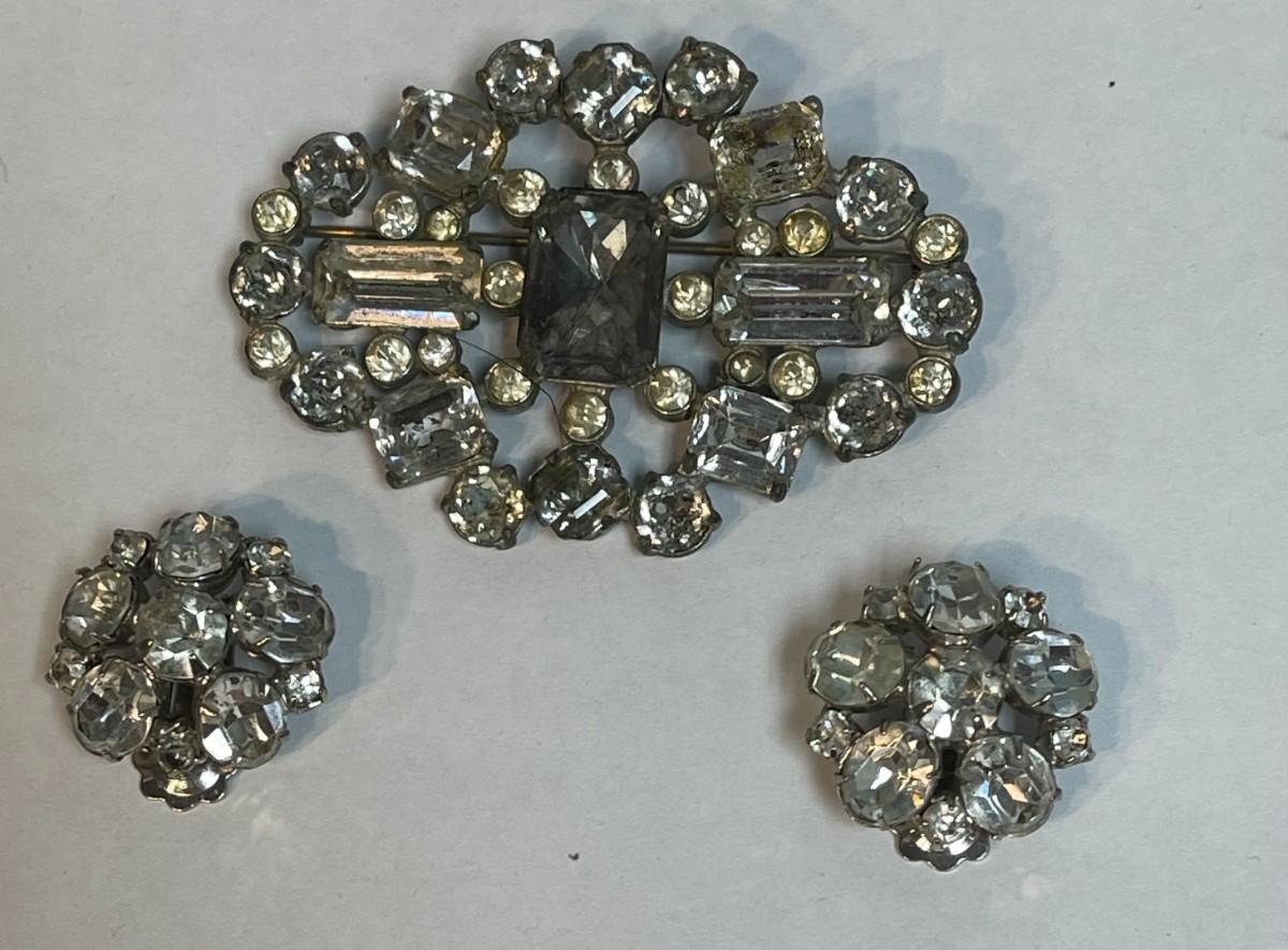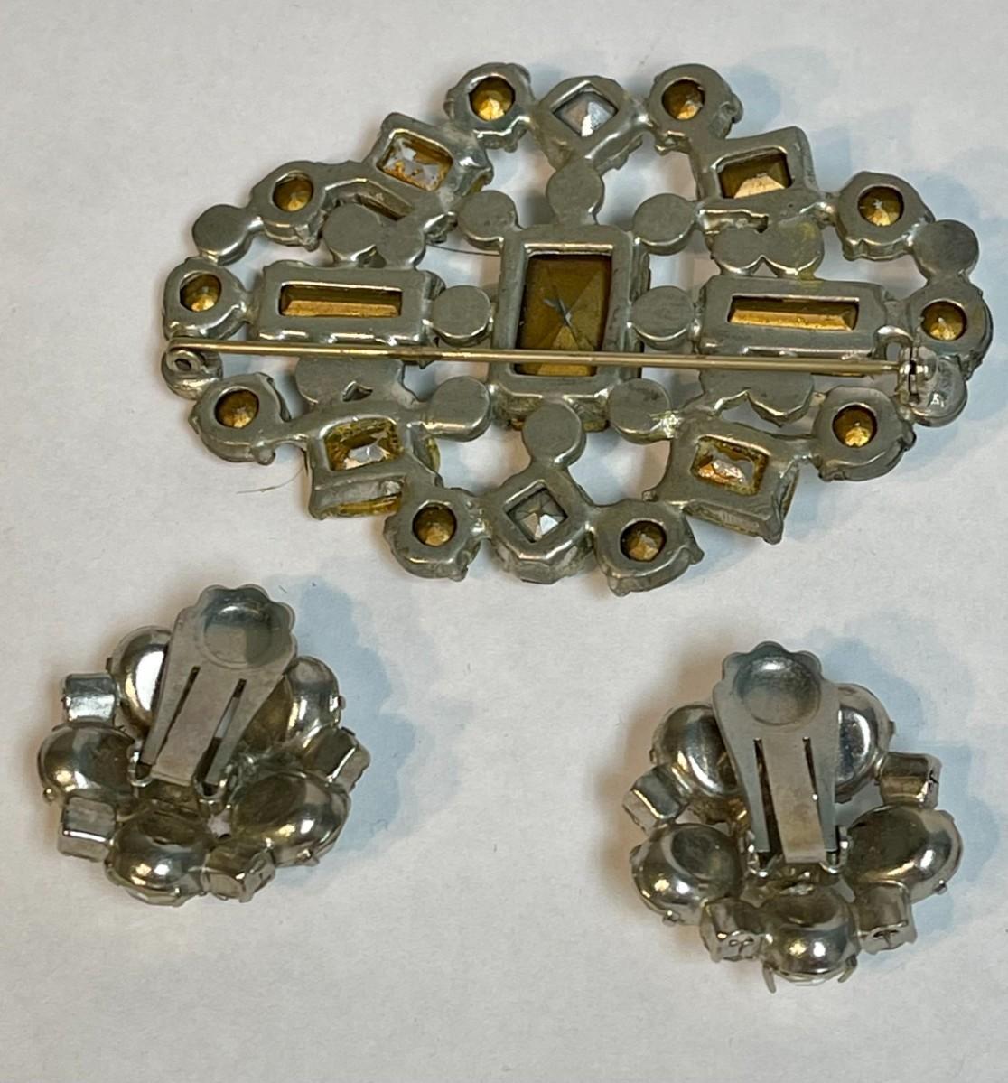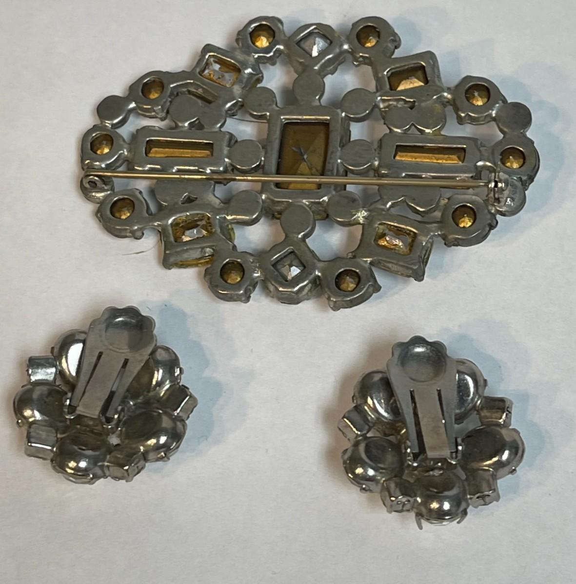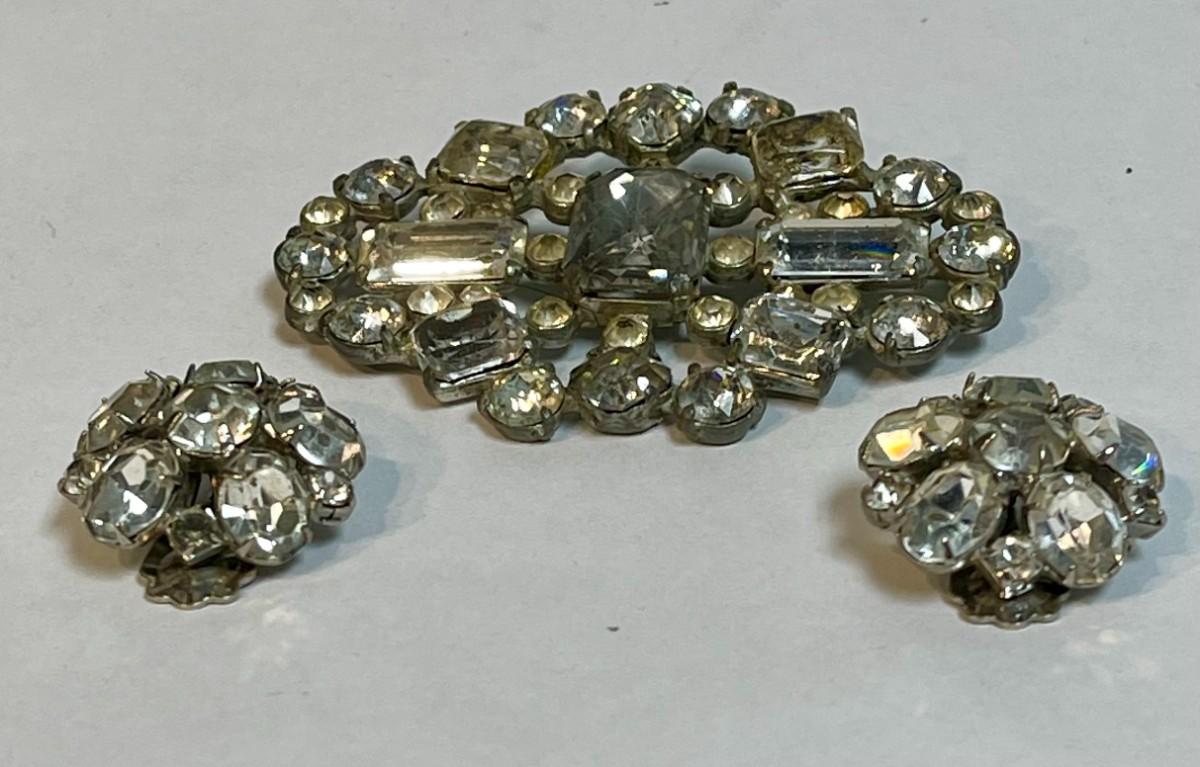 Vintage Rhinestone Jewelry Set Brooch Pin and Earrings