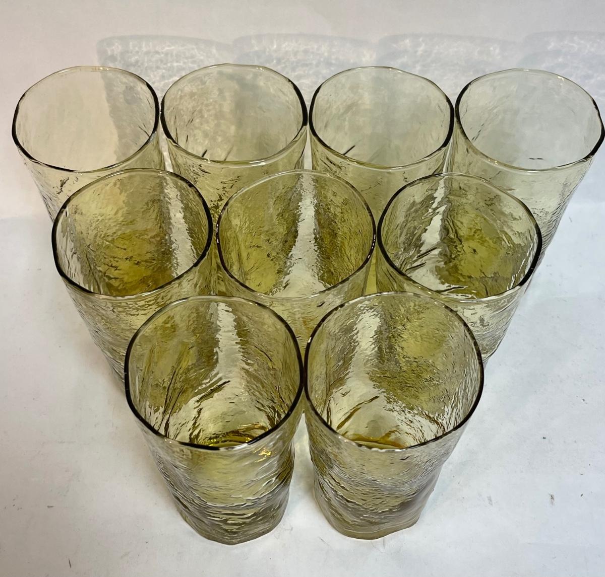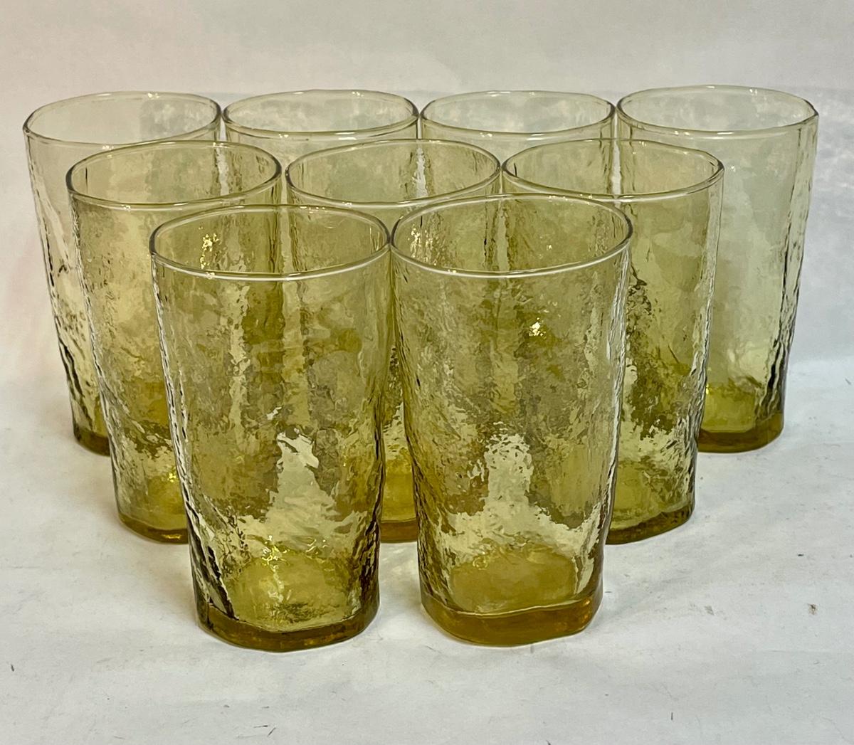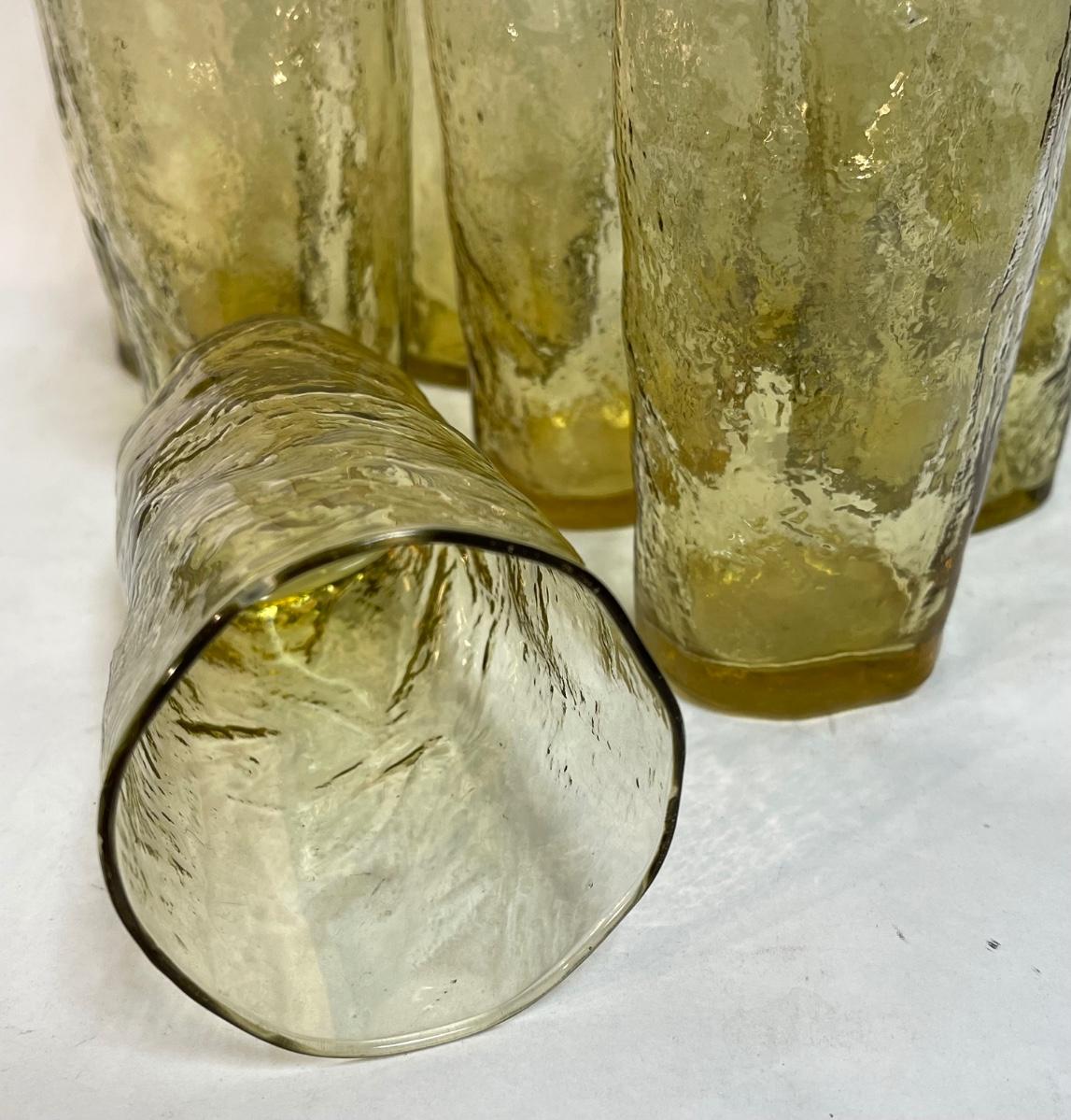 Mid Century Modern Yellow Amber Tall Textured Tumbler Glasses Set of 9