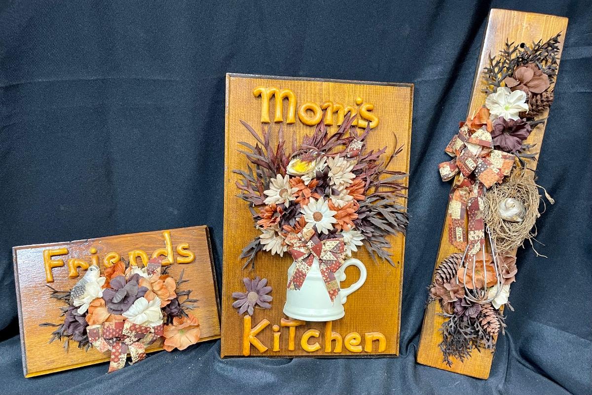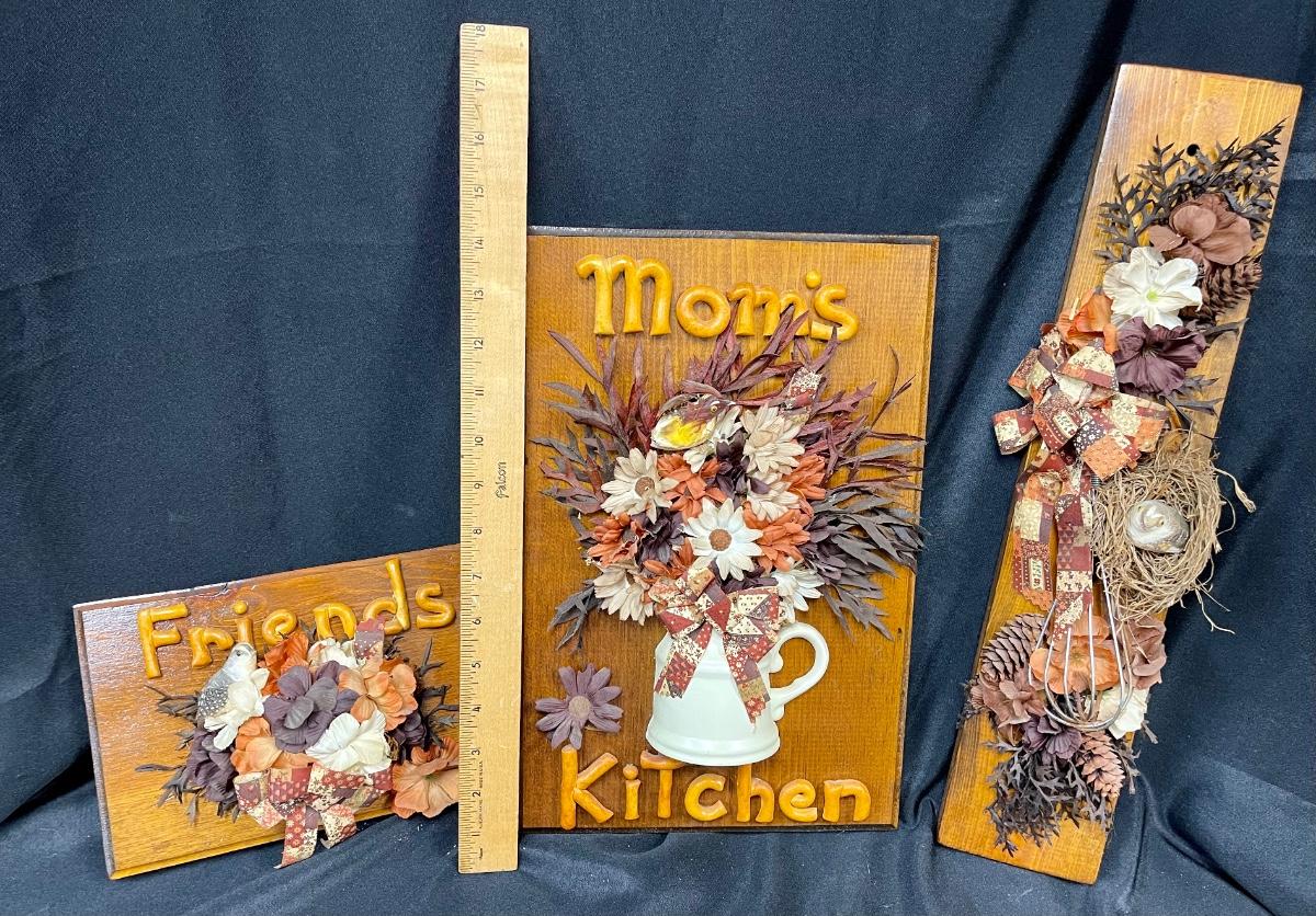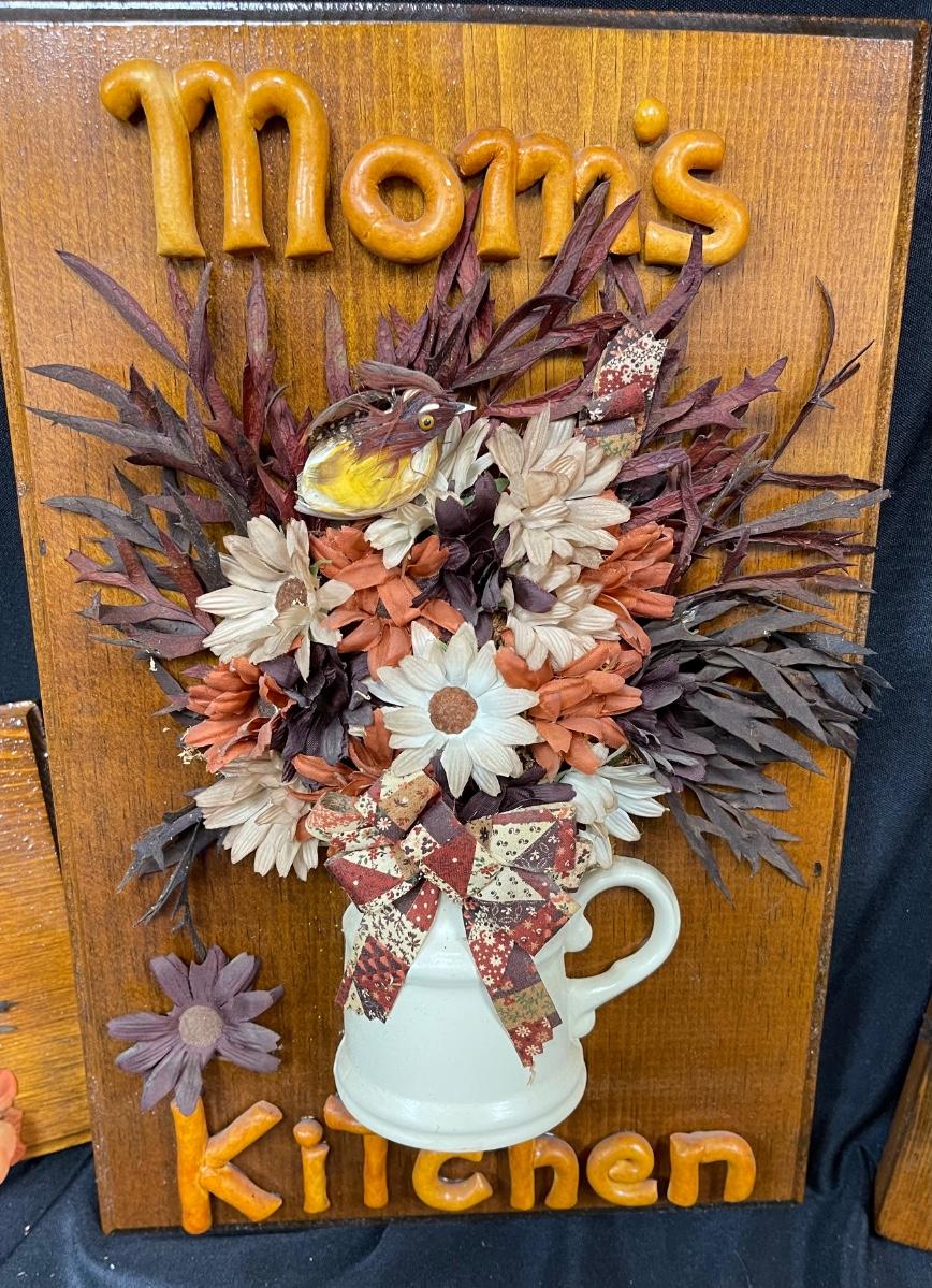 Vintage Retro 1970s Country Rustic Kitchen Wall Art Faux Flowers Warm Tones