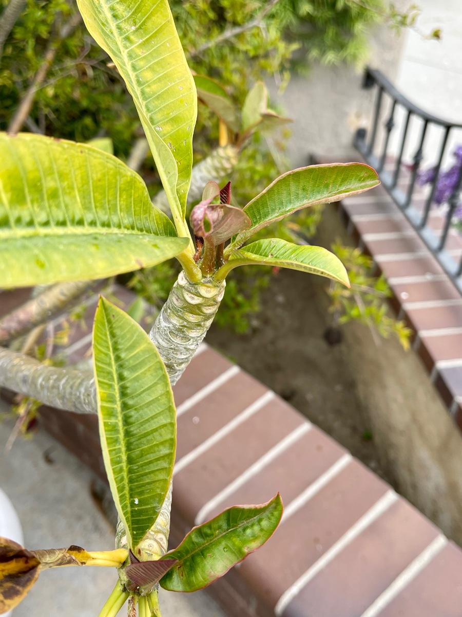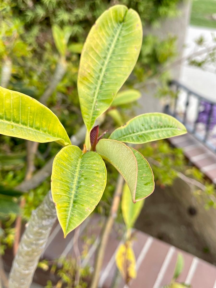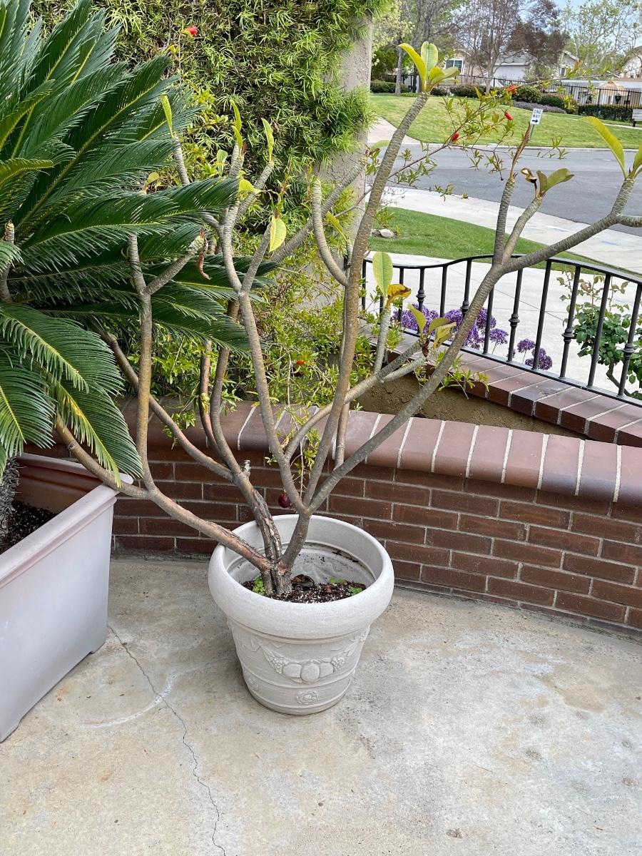 Established Plumeria Plant in Planter Pot. Flower Color Unknown.