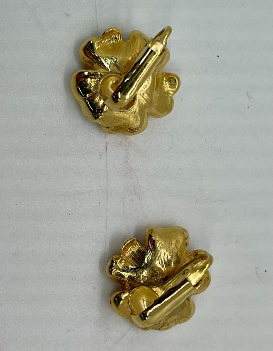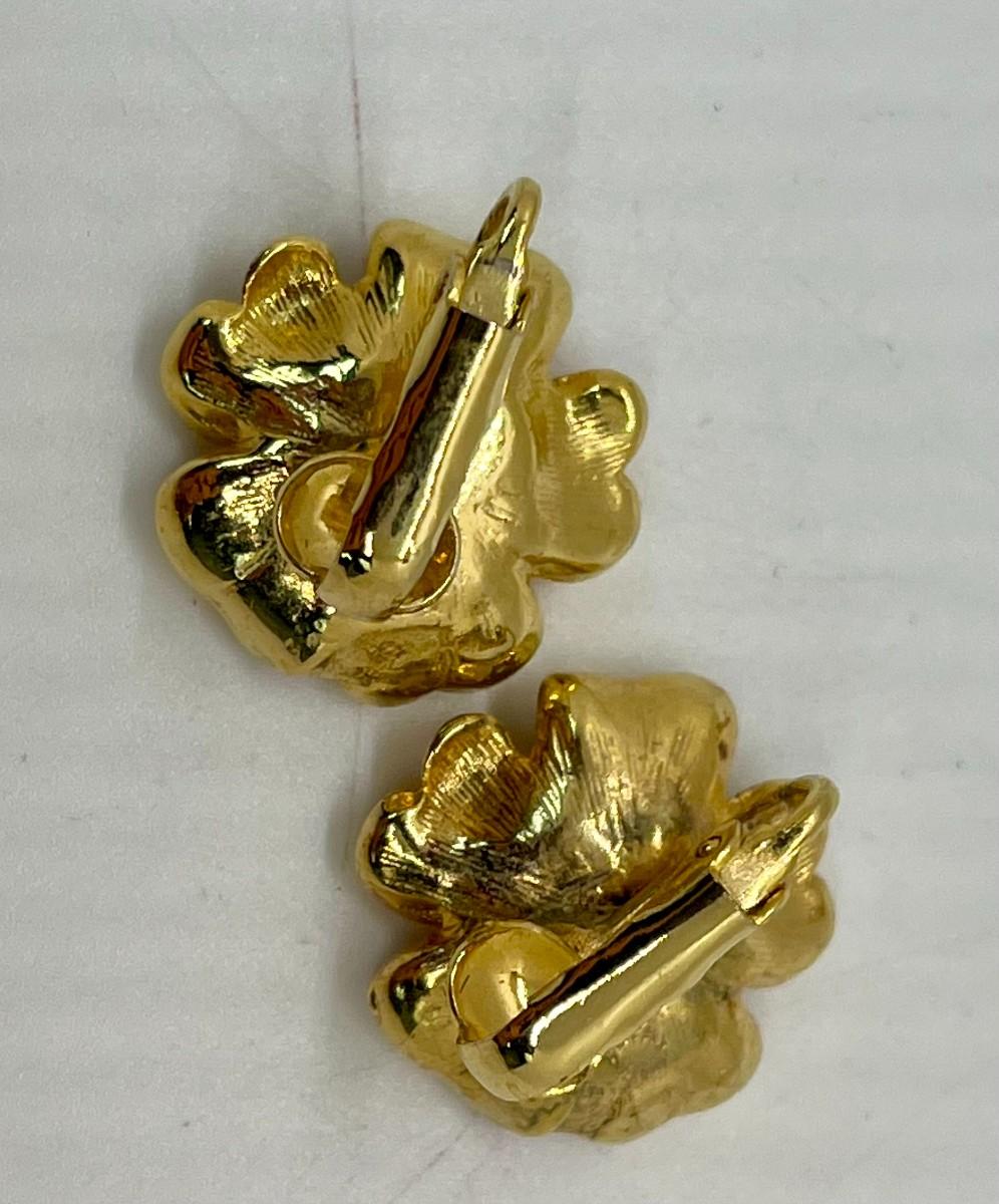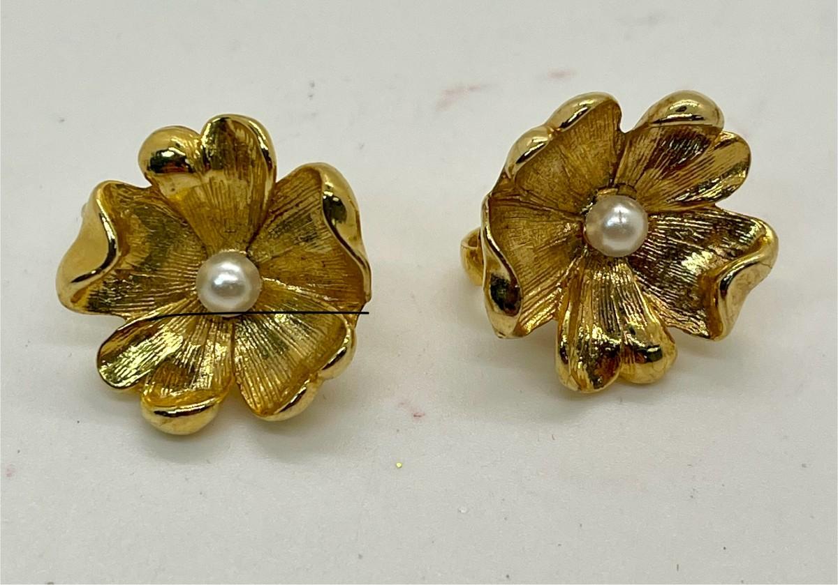 Vintage  Clip-on Earrings Gold-tone Flowers with pearl centers