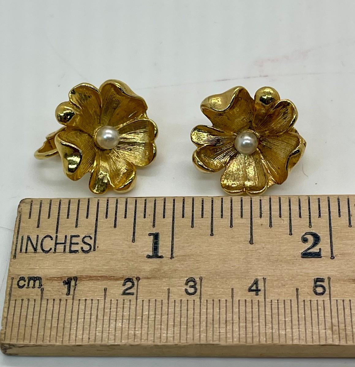 Vintage Clip-on Earrings Gold-tone Flowers with pearl centers