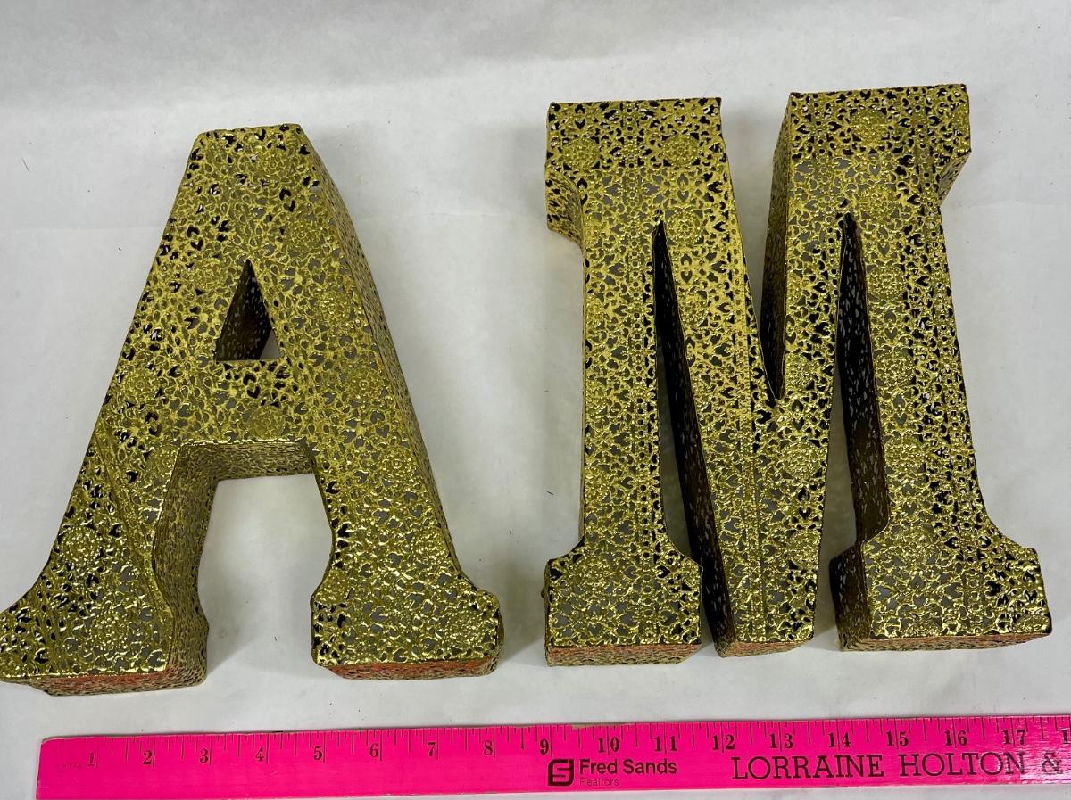 Gold Metal Filigree Capital Block Monogram Letter "A" & "M"