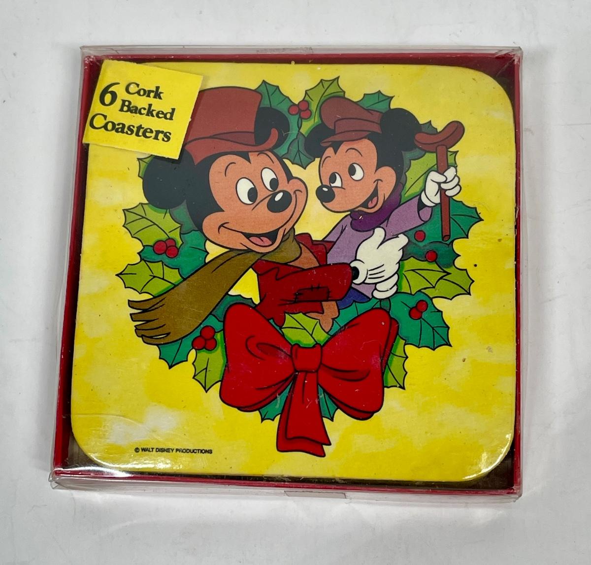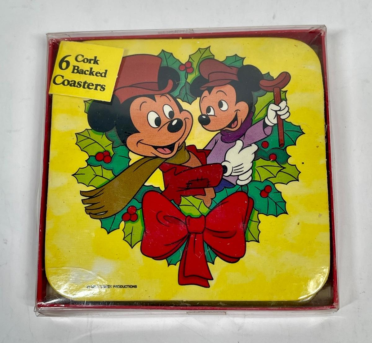 Set of 6 VTG Walt Disney Souvenir Cork Backed Mickey Mouse Coaster Set