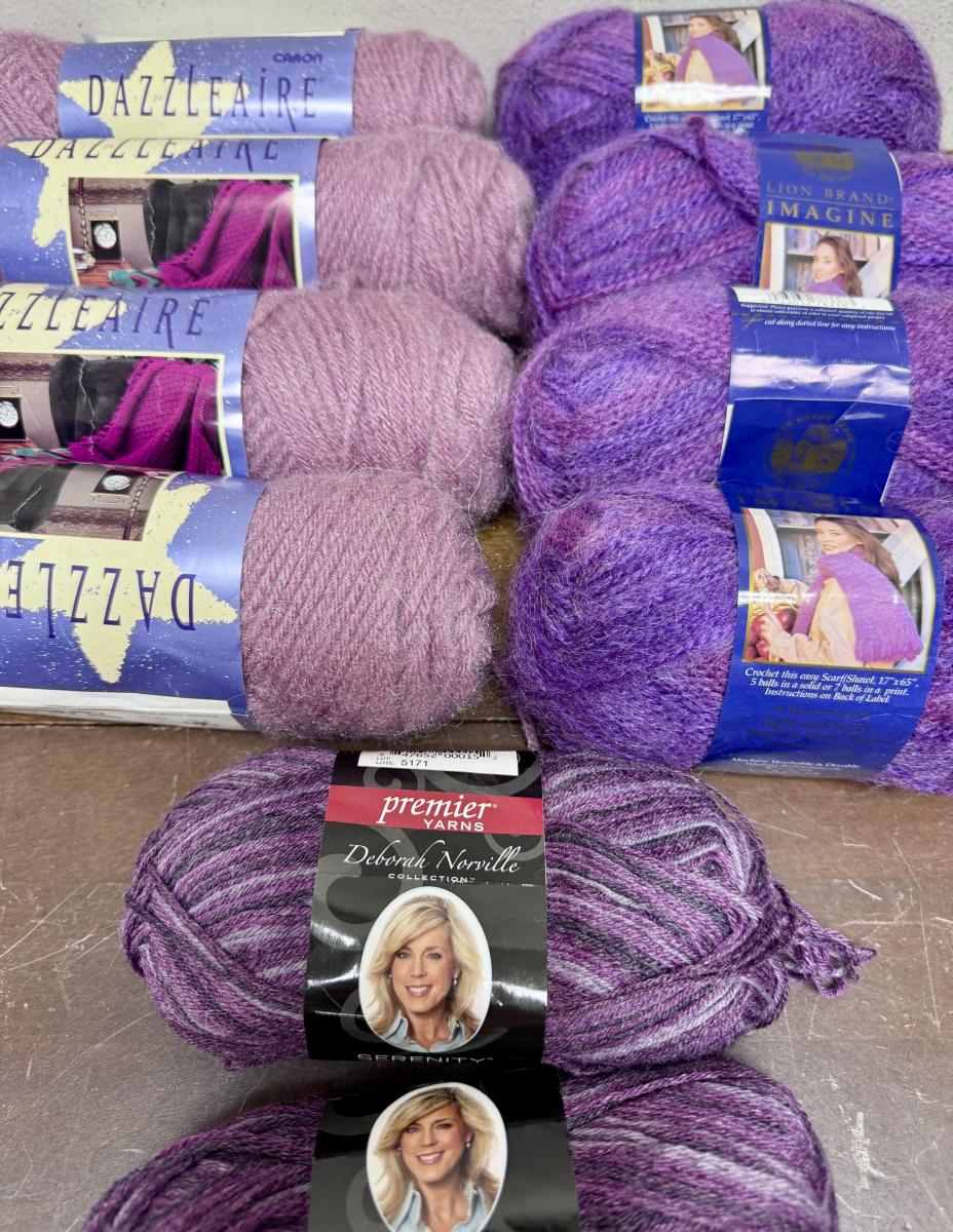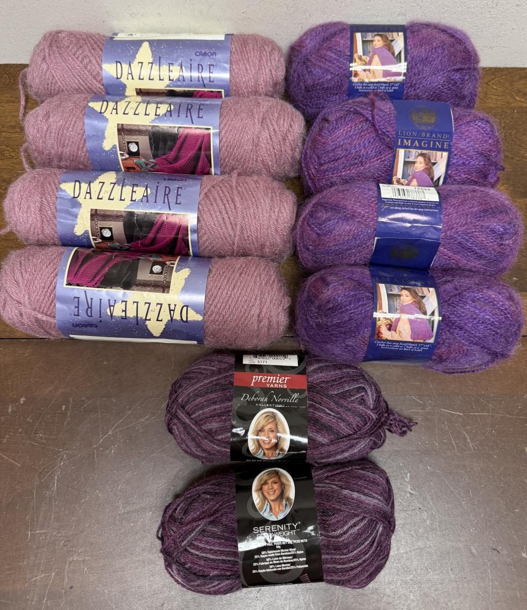 Yarn Lot #1 - pink purple lavender - PREMIER DAZZLEAIRE LION BRAND IMAGINE