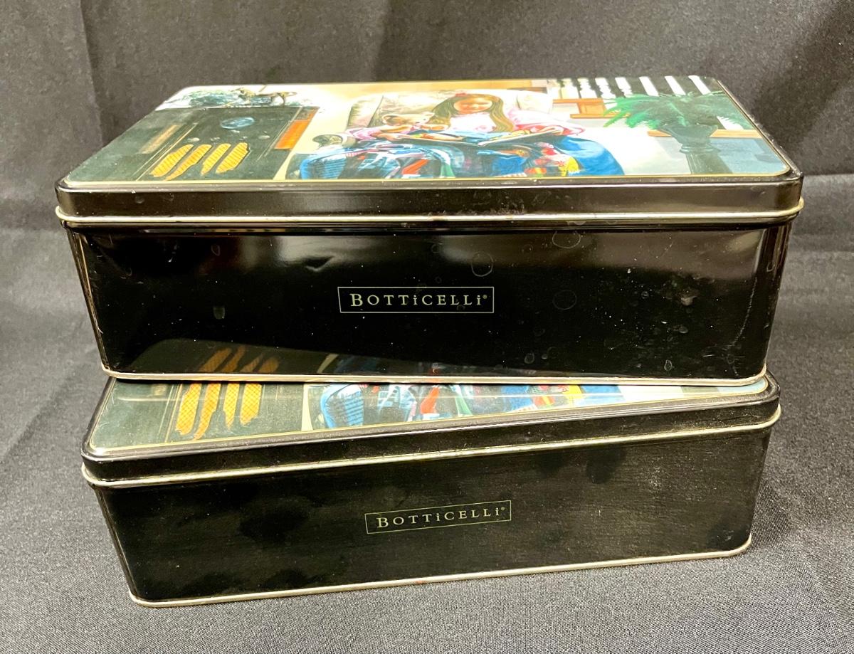 Pair of Matching Botticelli Collector Tins Girl with Bear Reading in Chair