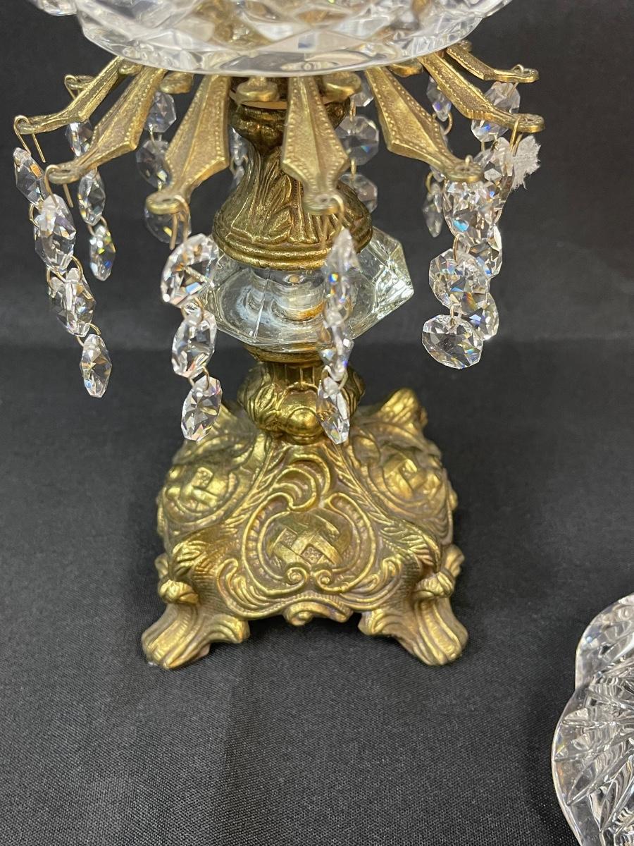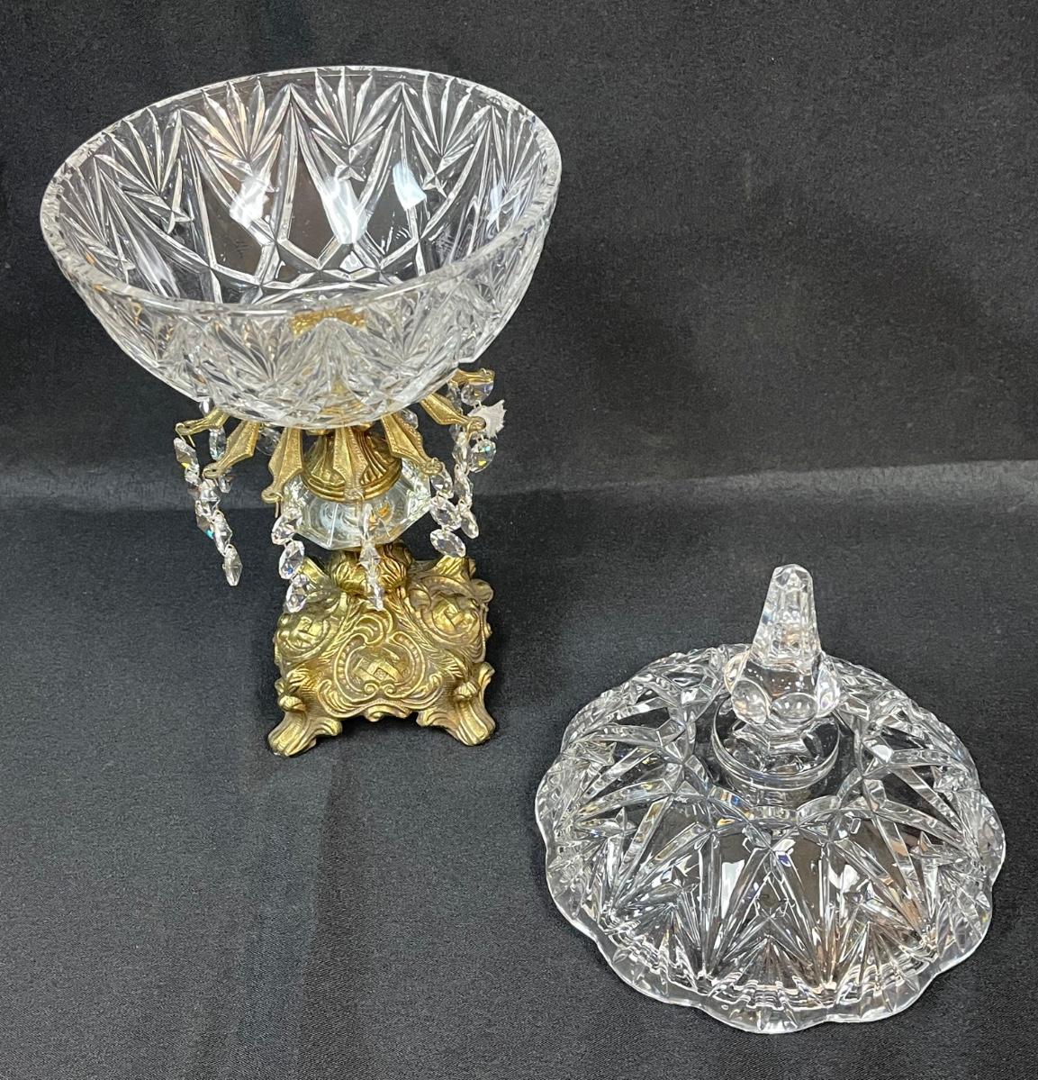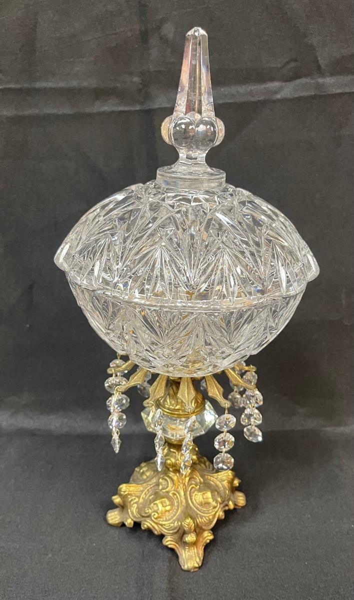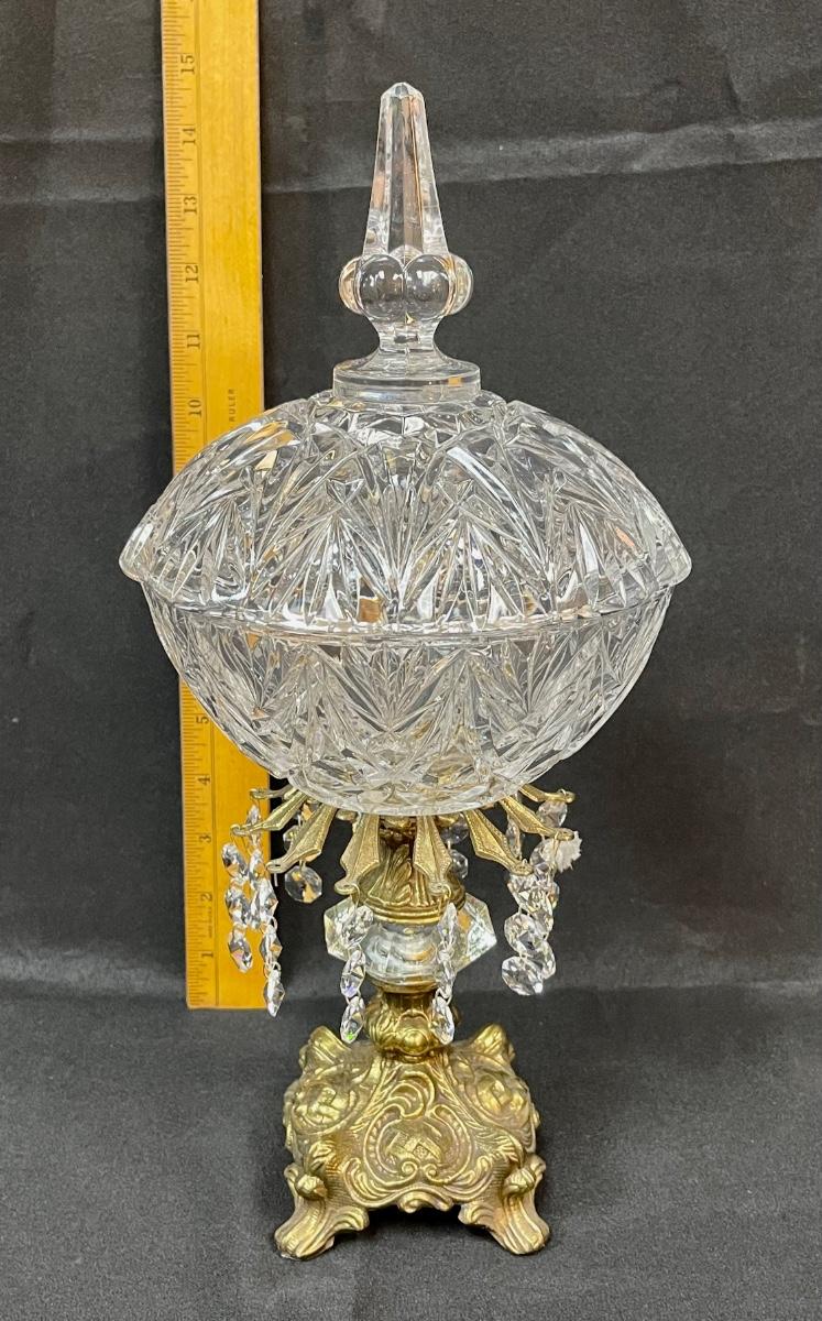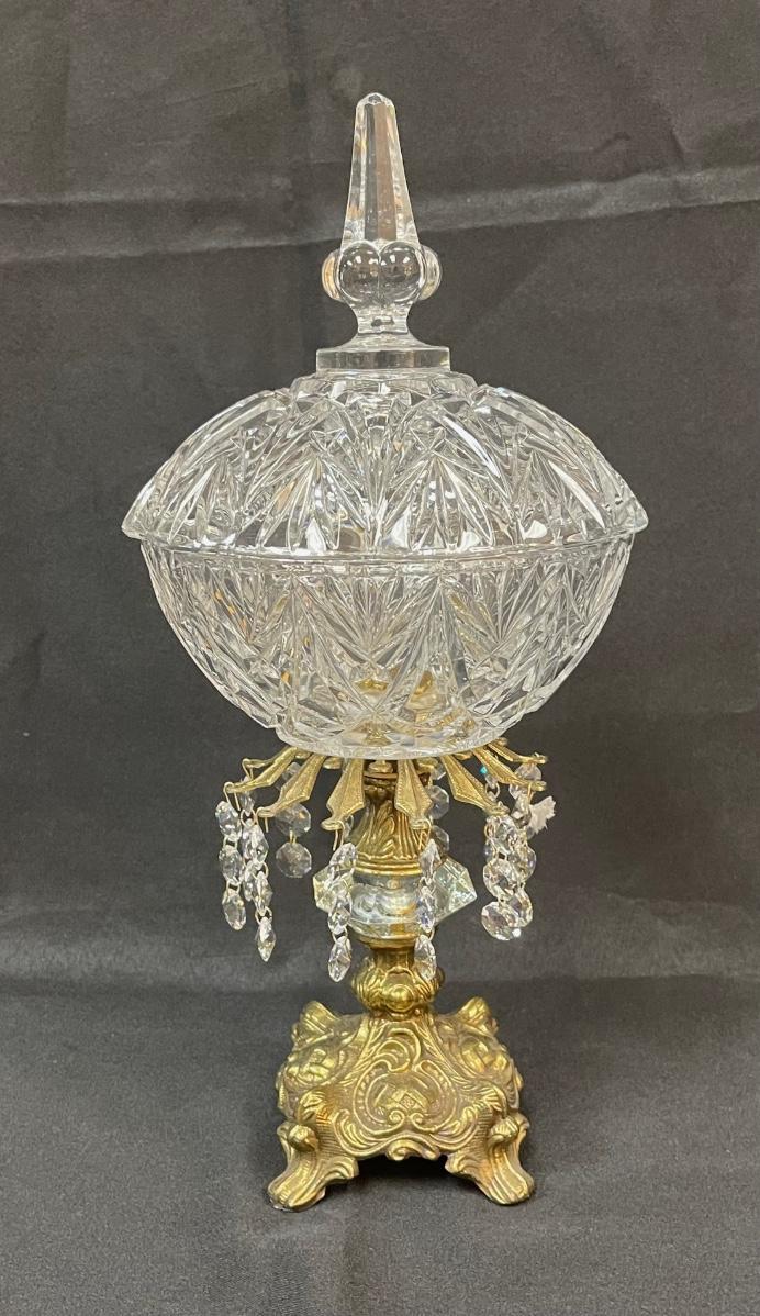 Vintage Hollywood Regency Filigree Style Glass Metal Pedestal Compote Candy Dish
