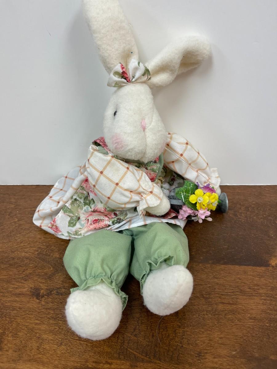 Folk Art Style Bunny Rabbit Plush Springtime Decor