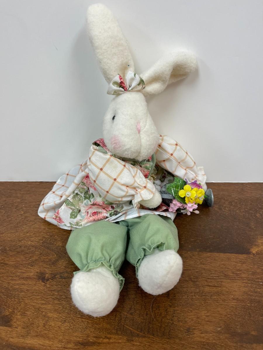 Folk Art Style Bunny Rabbit Plush Springtime Decor. In good condition.