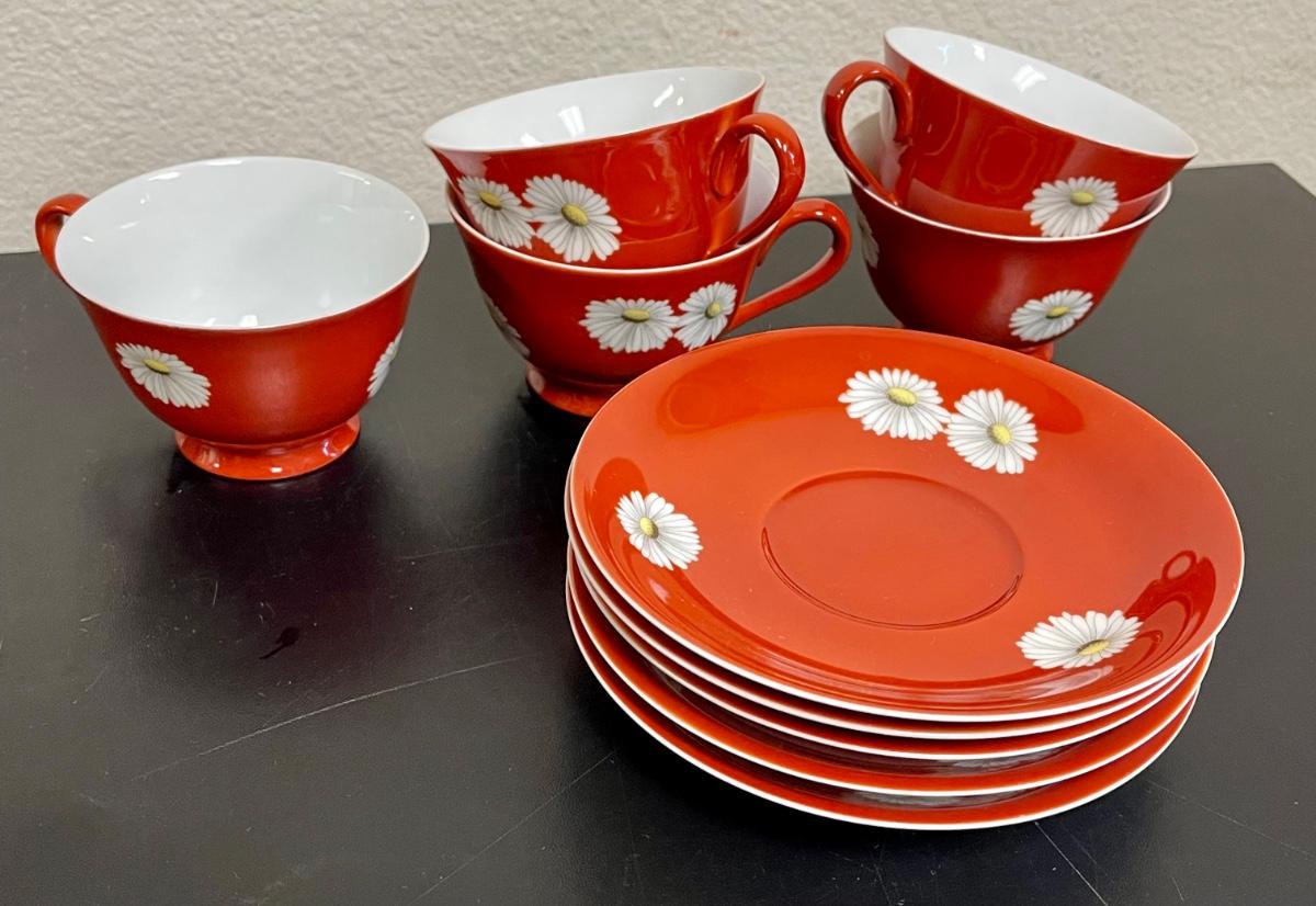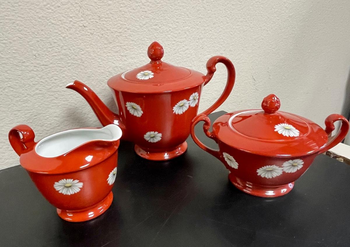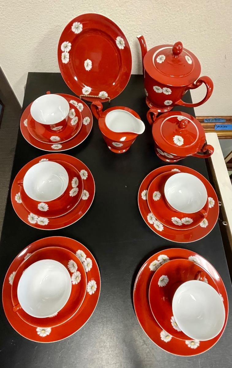 Noritake Nippon Toki Kaisha Red Sunset White Chrysanthemum 19+ pieces MCM Mid-Century