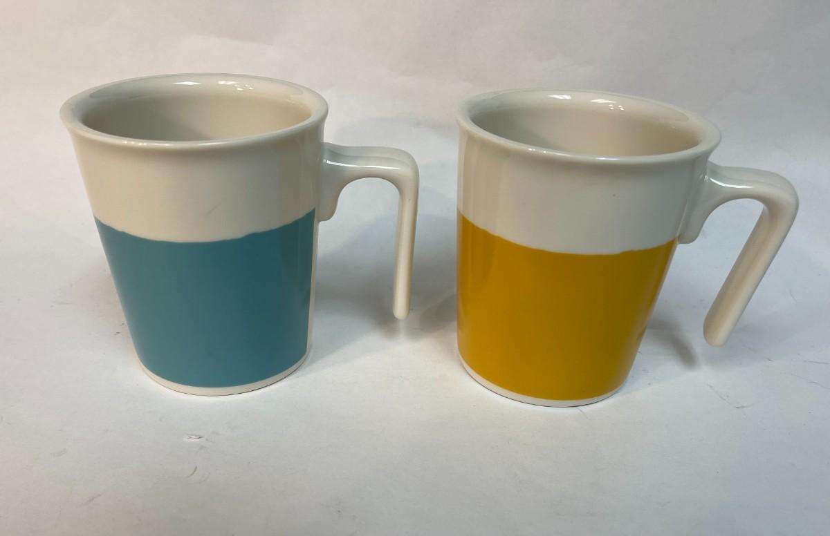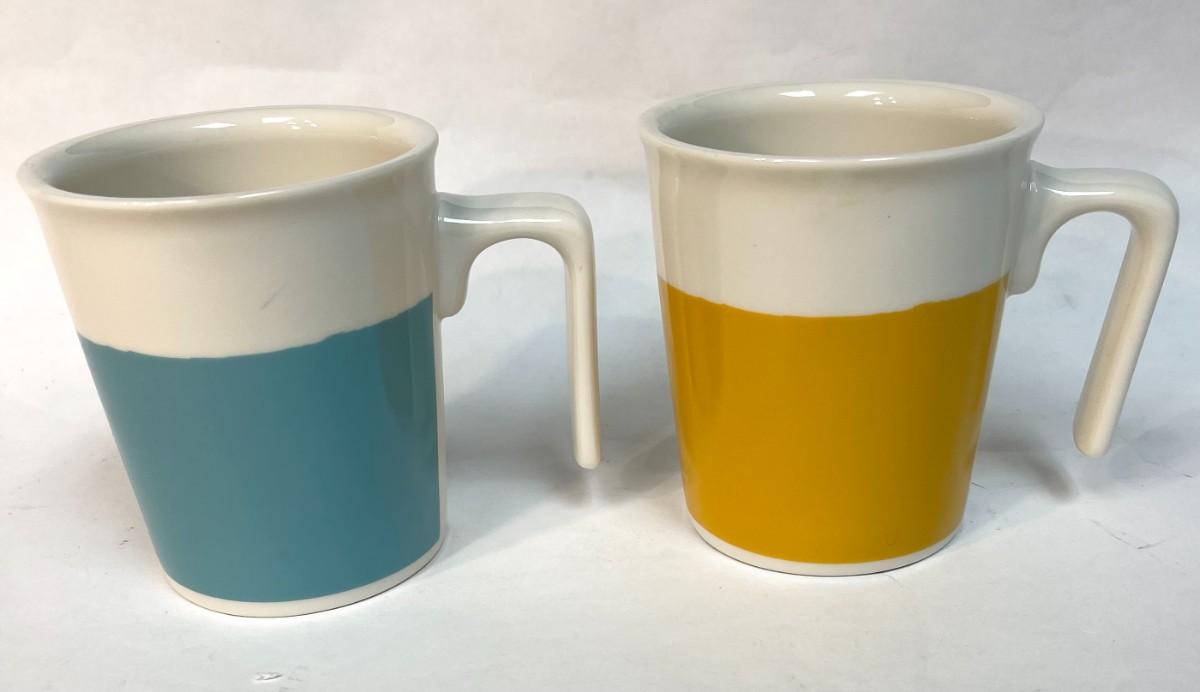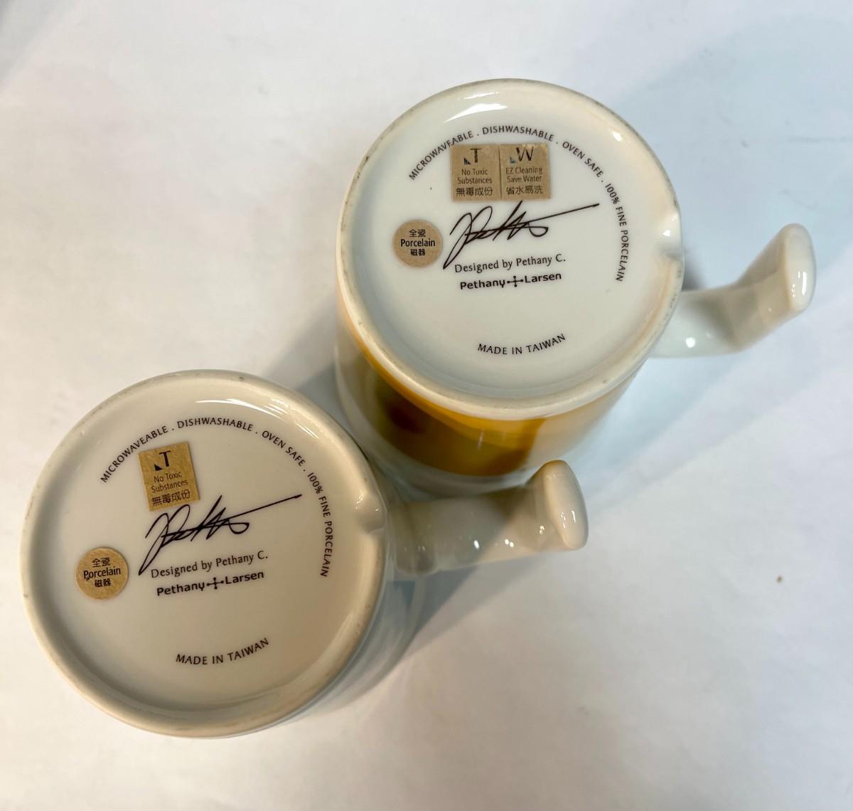 lot of 2 Pethany Larsen Coffee Mugs Cups with handle Teal & Gold
