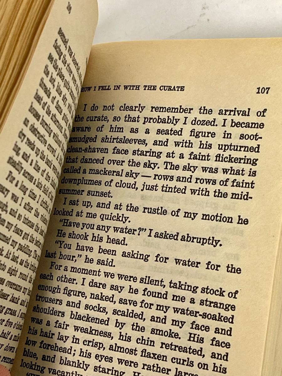 There is a bent corner on the front cover of the book, but there is no other significant damage and is in good readable condition. Check pictures for more details and for sizing.