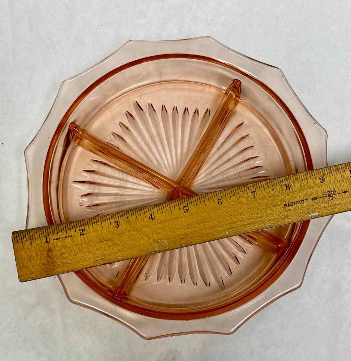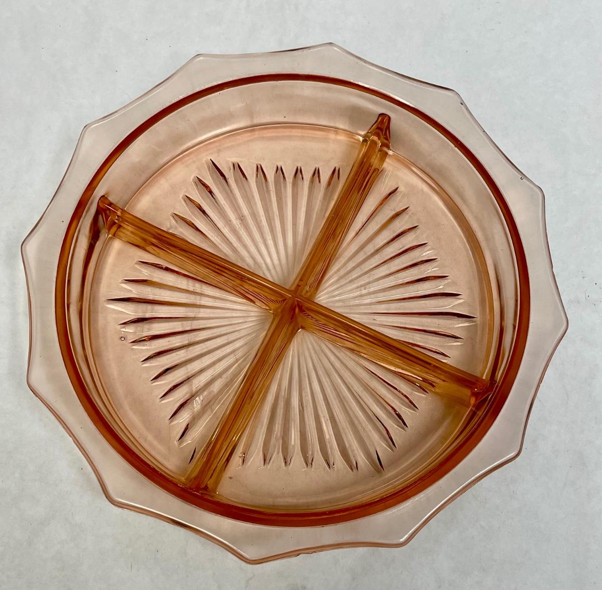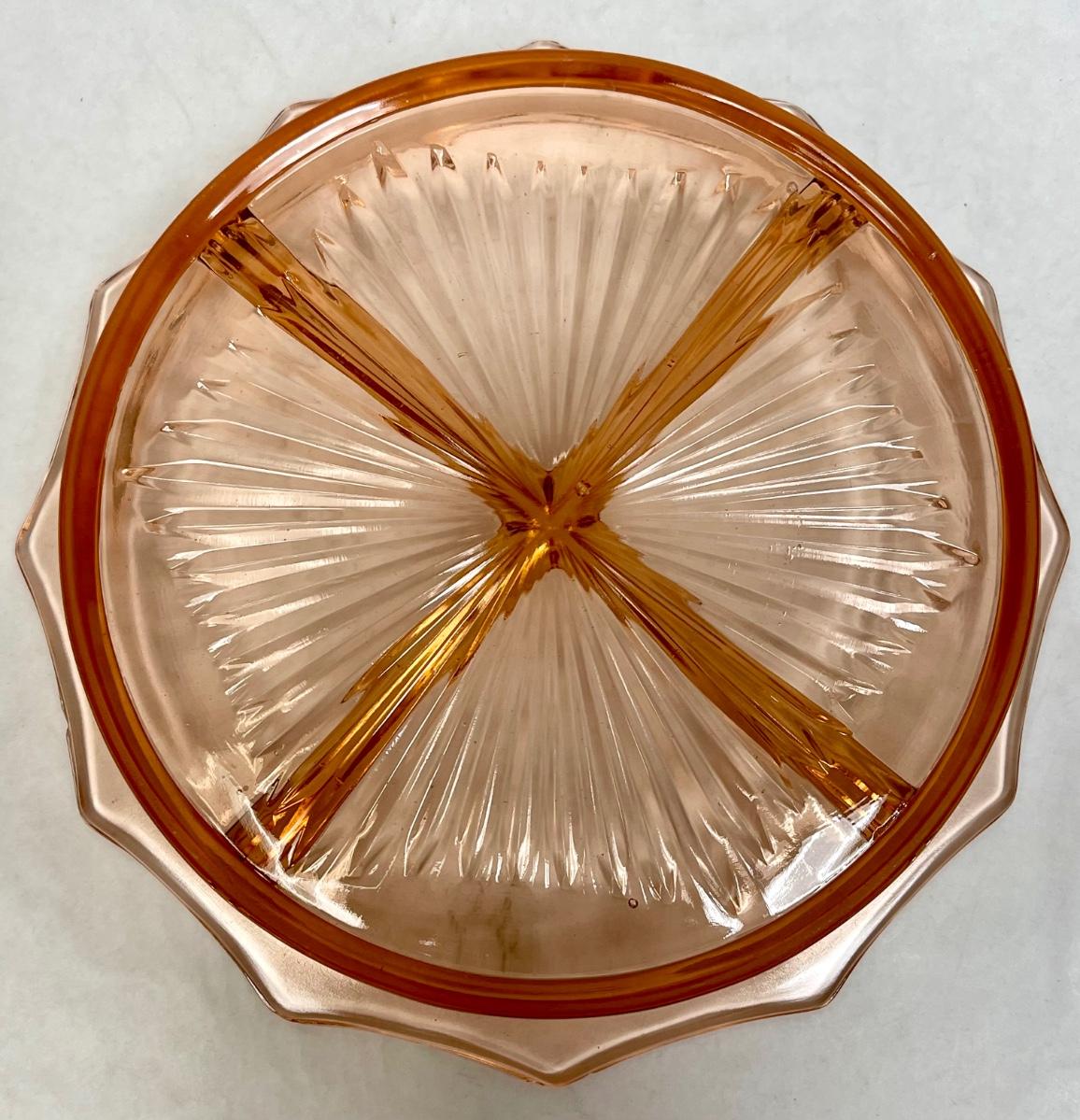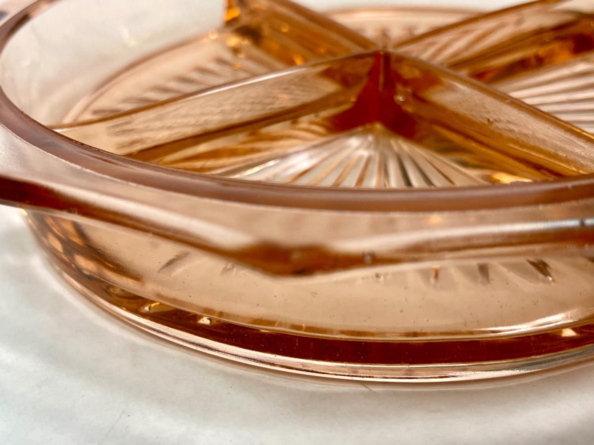 Vintage Glass Divided Dish peach colored Glass