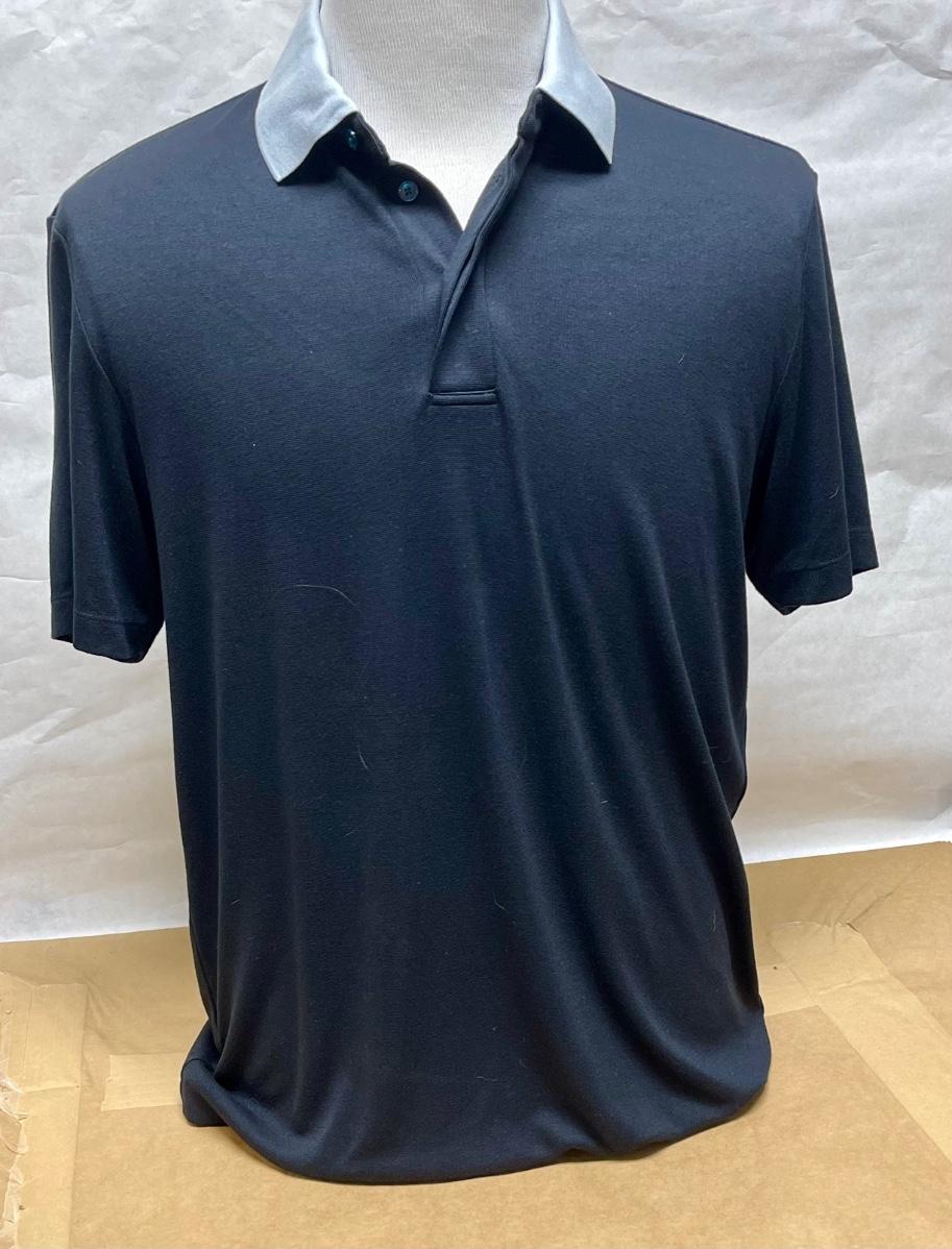 Near New Theory Polo Shirt Navy Blue with Light Blue Collar size L