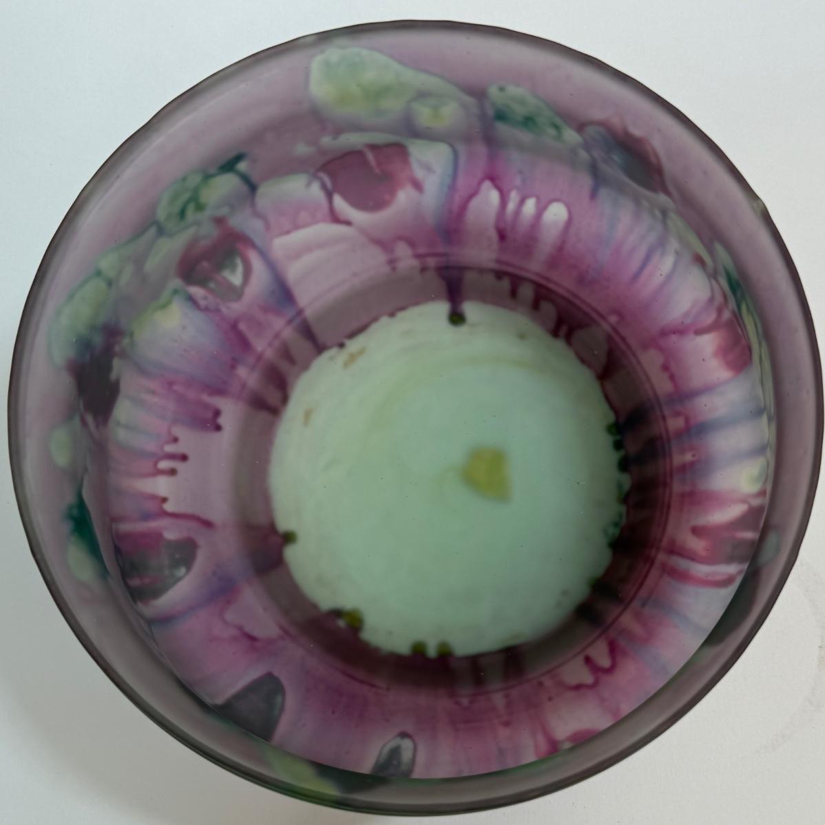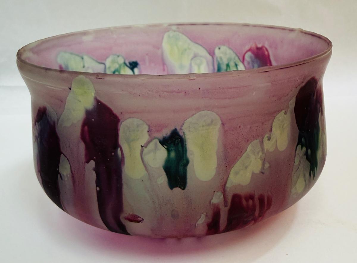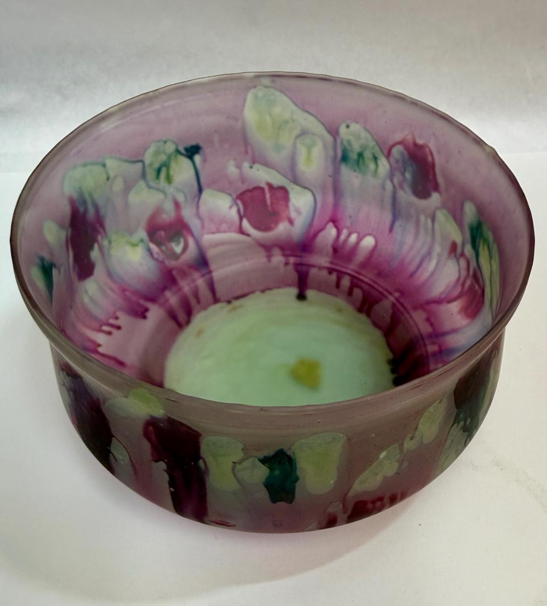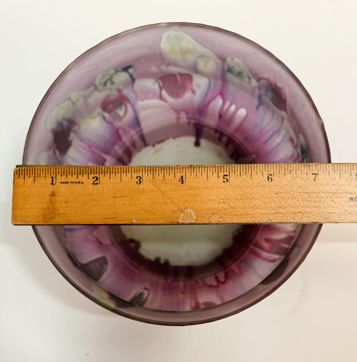 Vintage hand-painted Rueven Art Nouveau satin glass serving bowl.