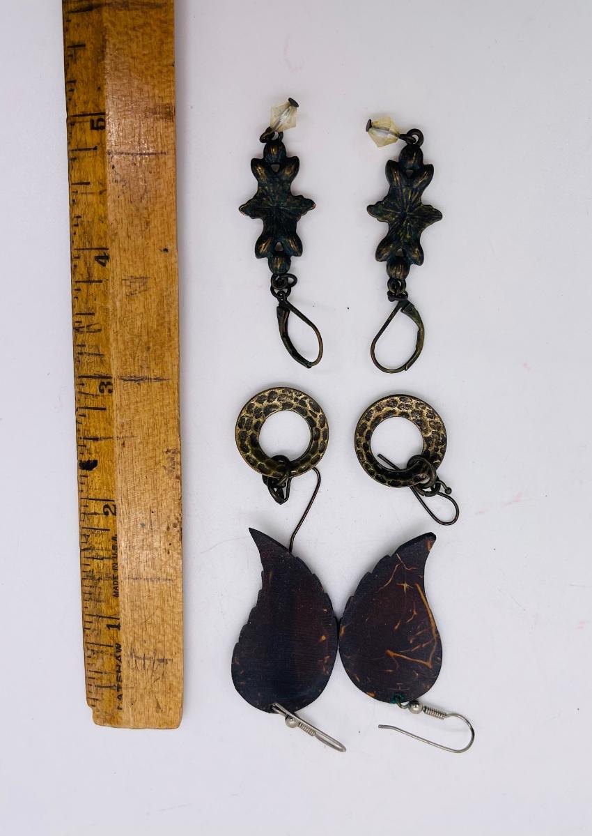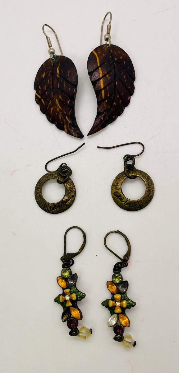 Vintage Earring Lot - 3 sets - dangling pierced leaves hoops beads