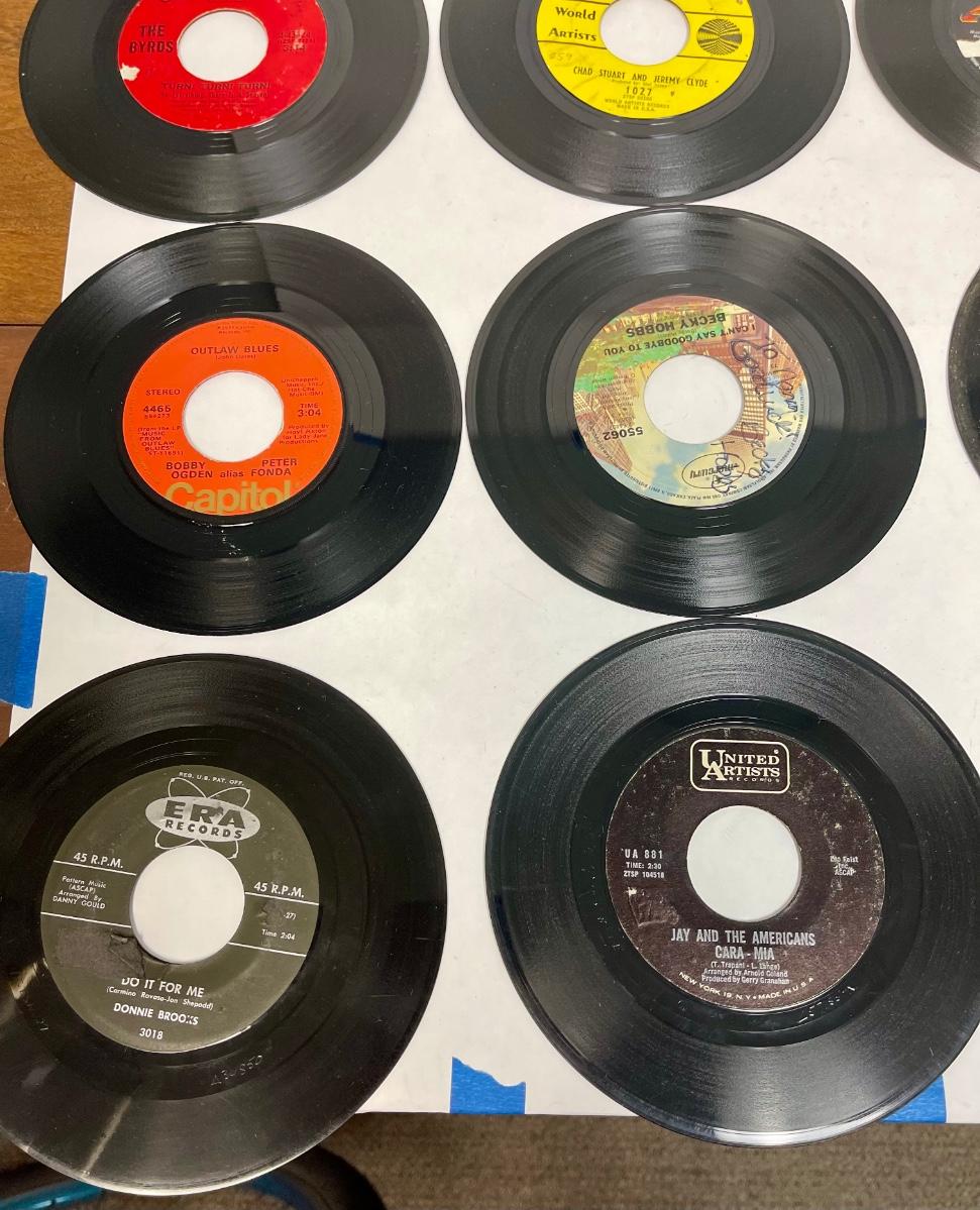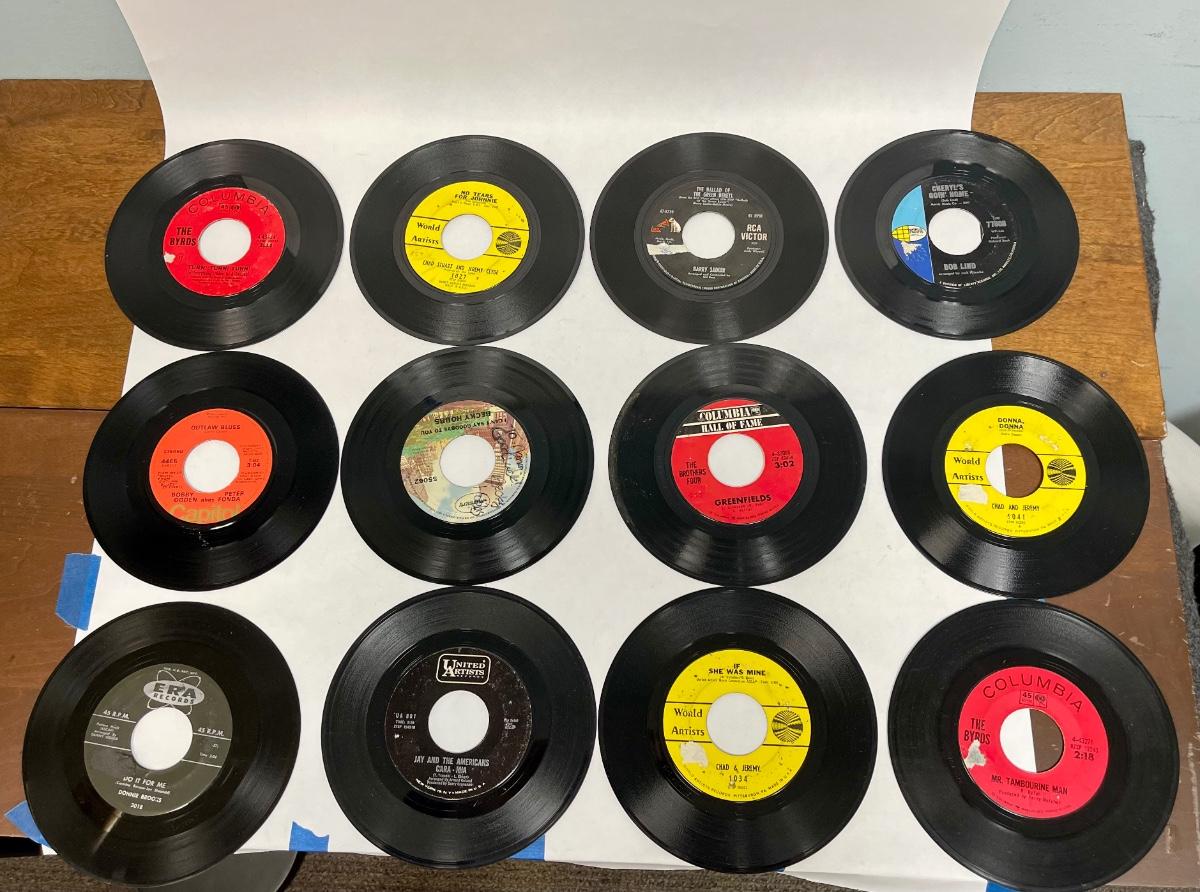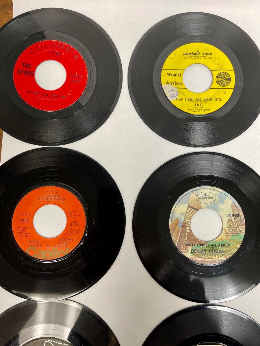 Vintage Vinyl 45's Lot #4 - many artists & labels - The Byrds, Peter Fonda & Susan St. James, Jay & The Americans, etc