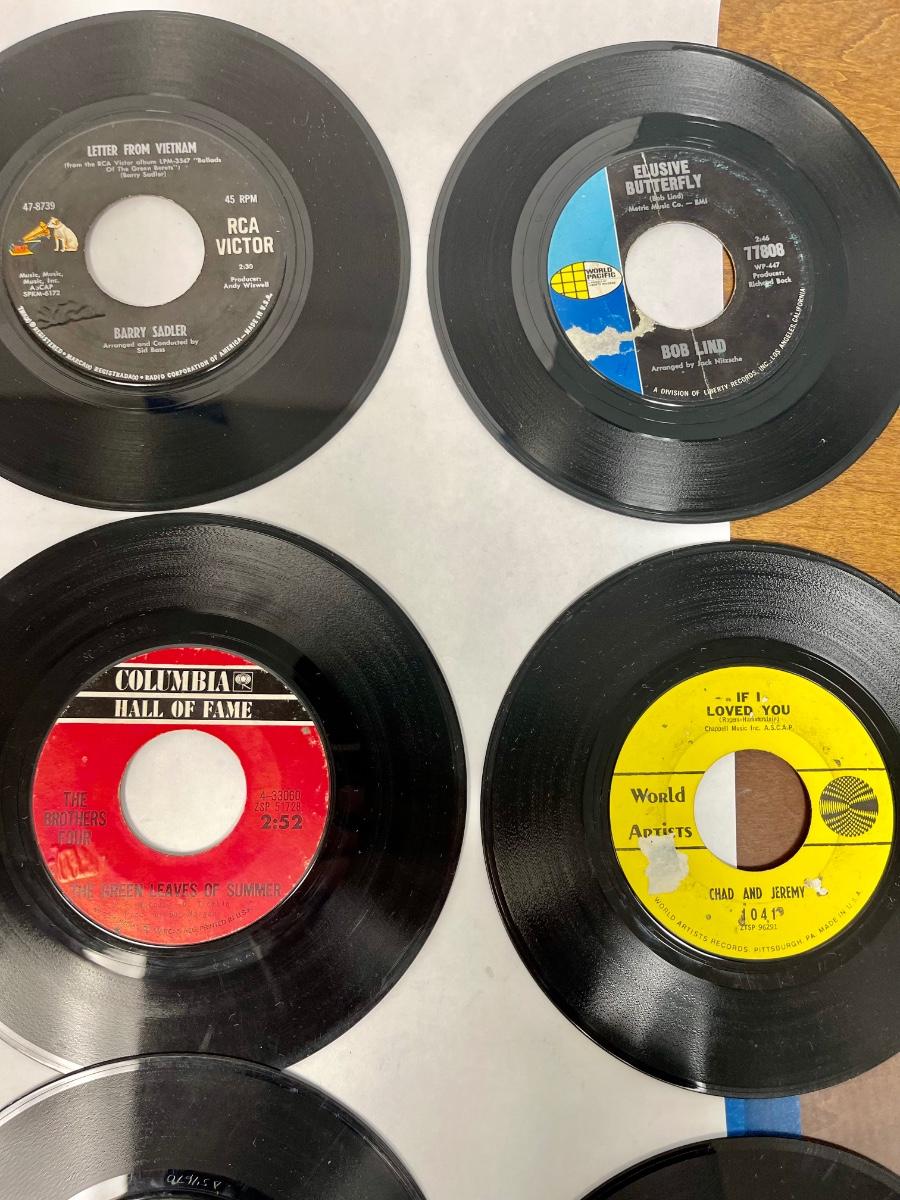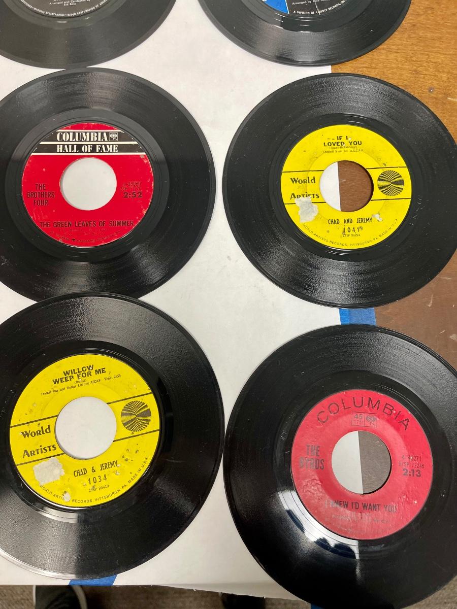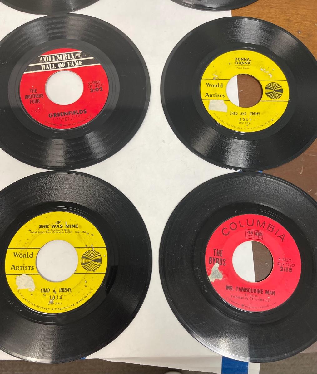 Vintage Vinyl 45's Lot #4 - many artists & labels - The Byrds, Peter Fonda & Susan St. James, Jay & The Americans, etc