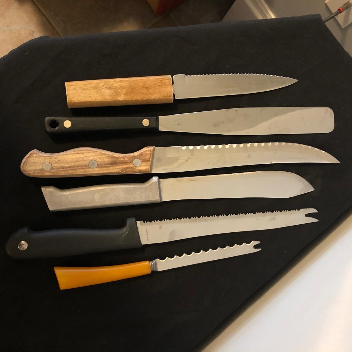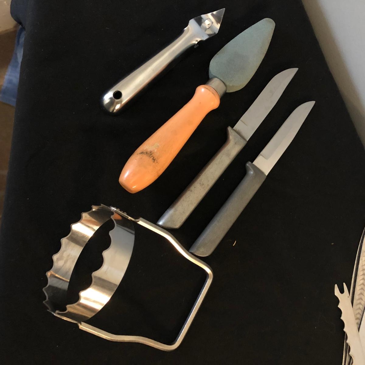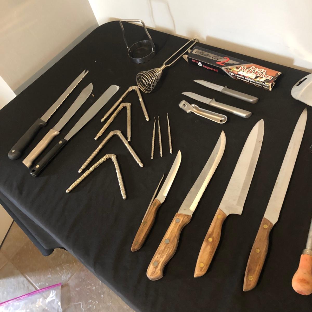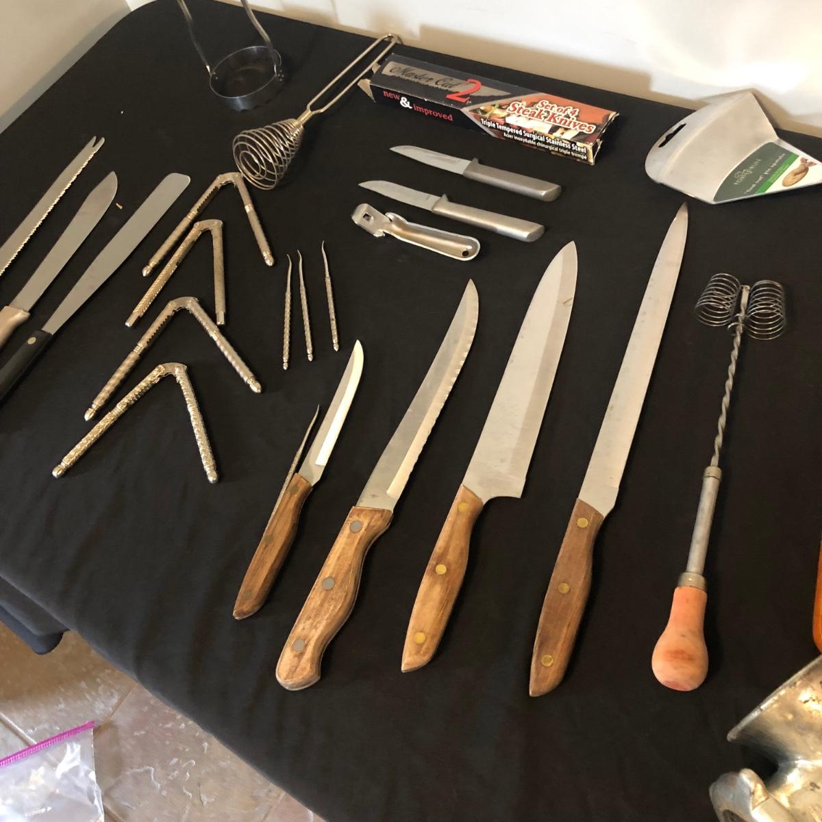 Vintage Kitchen Tools with Knives, Maid of Honour Meat Grinder, Lobster Crackers, and More (K-JF)
