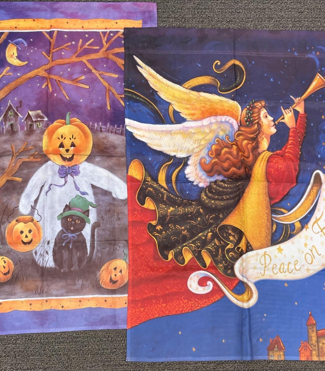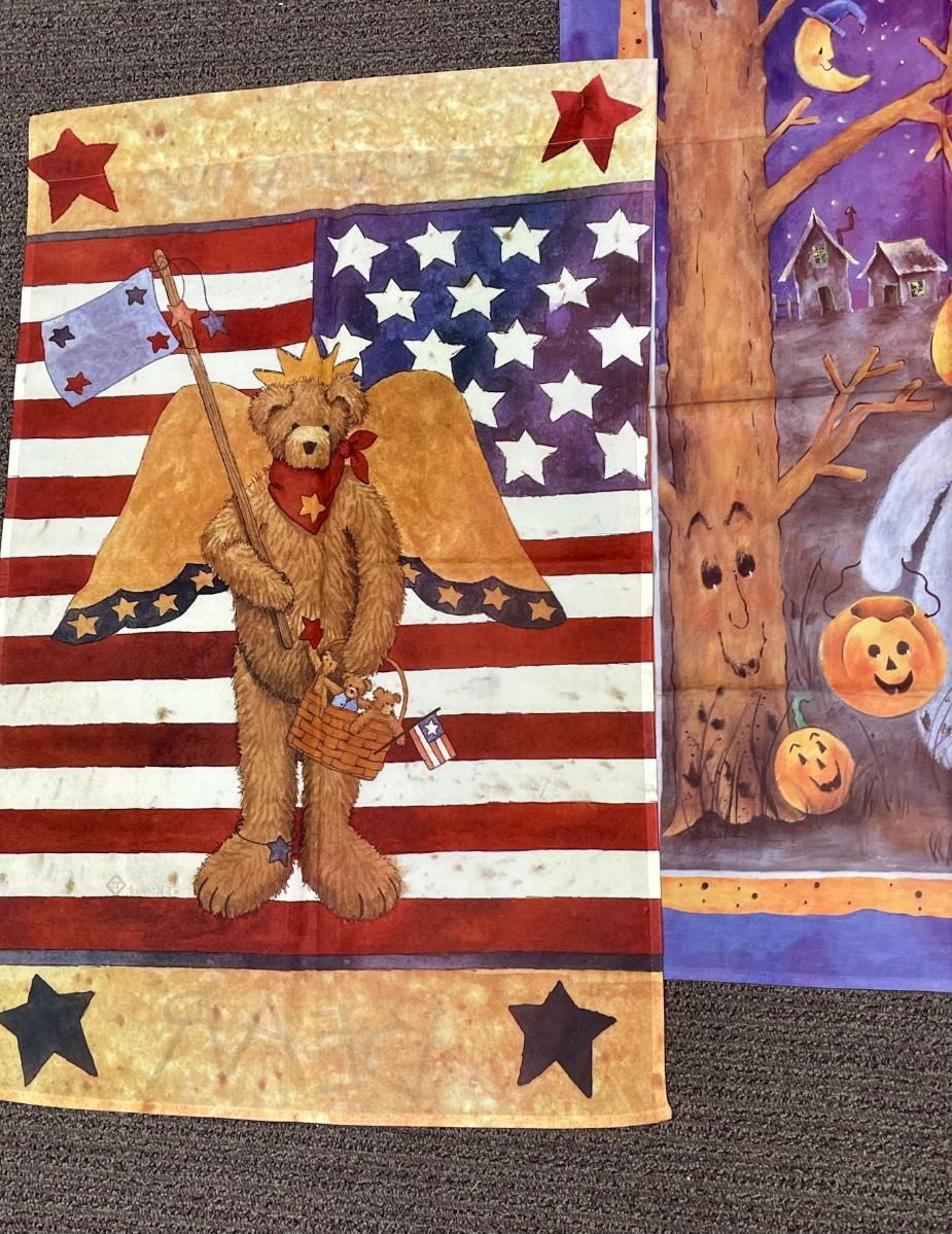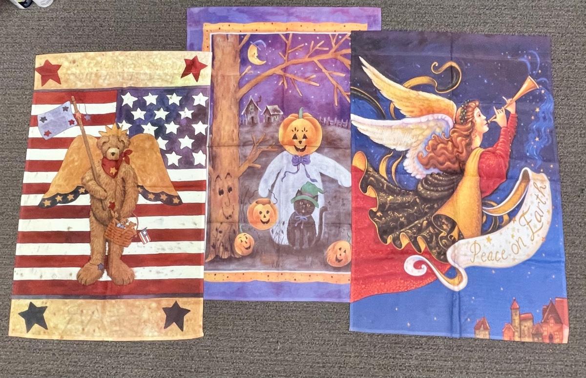 Lot of 3 Regular Sized Garden Flags - 4th of July, Halloween, Angels