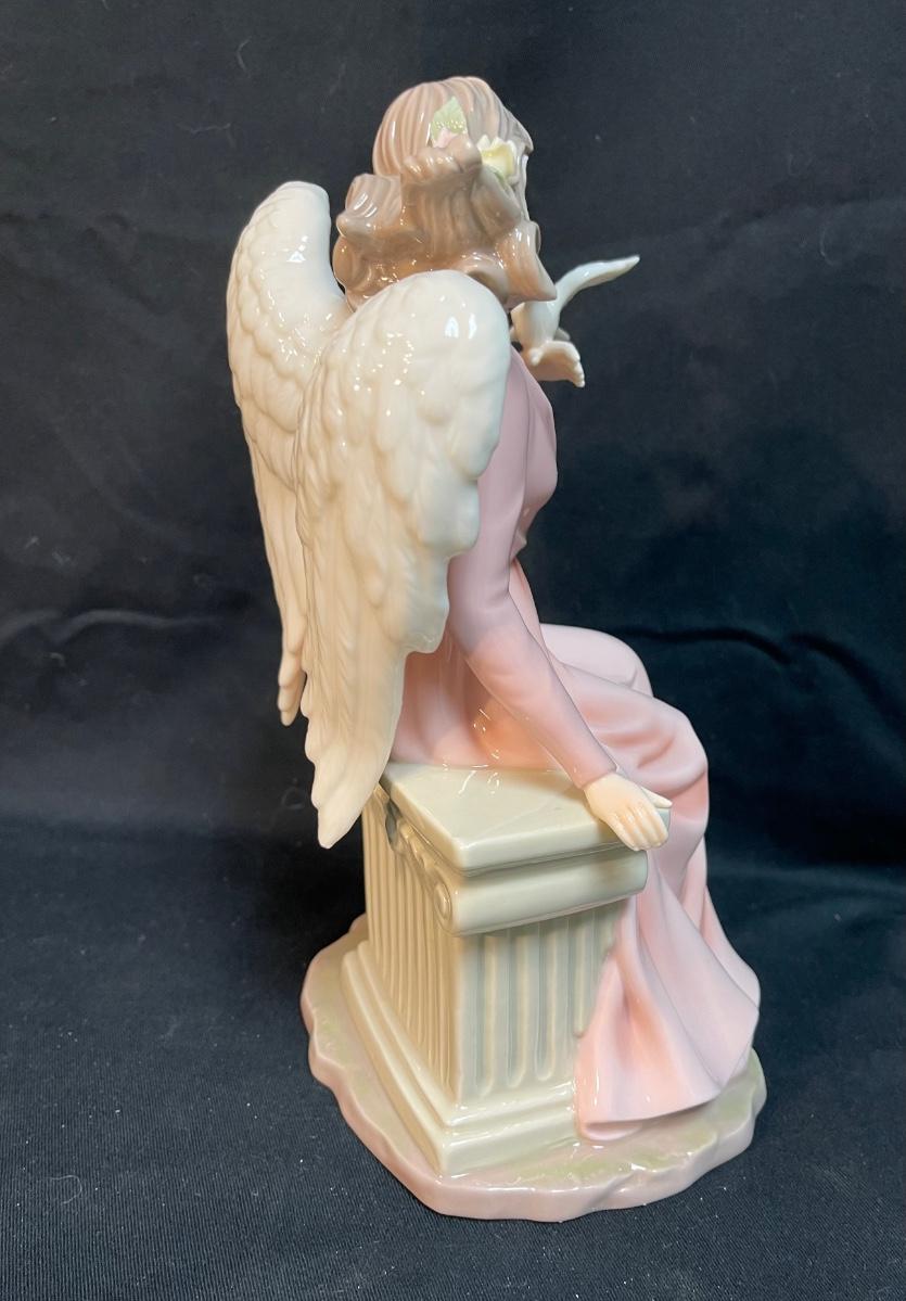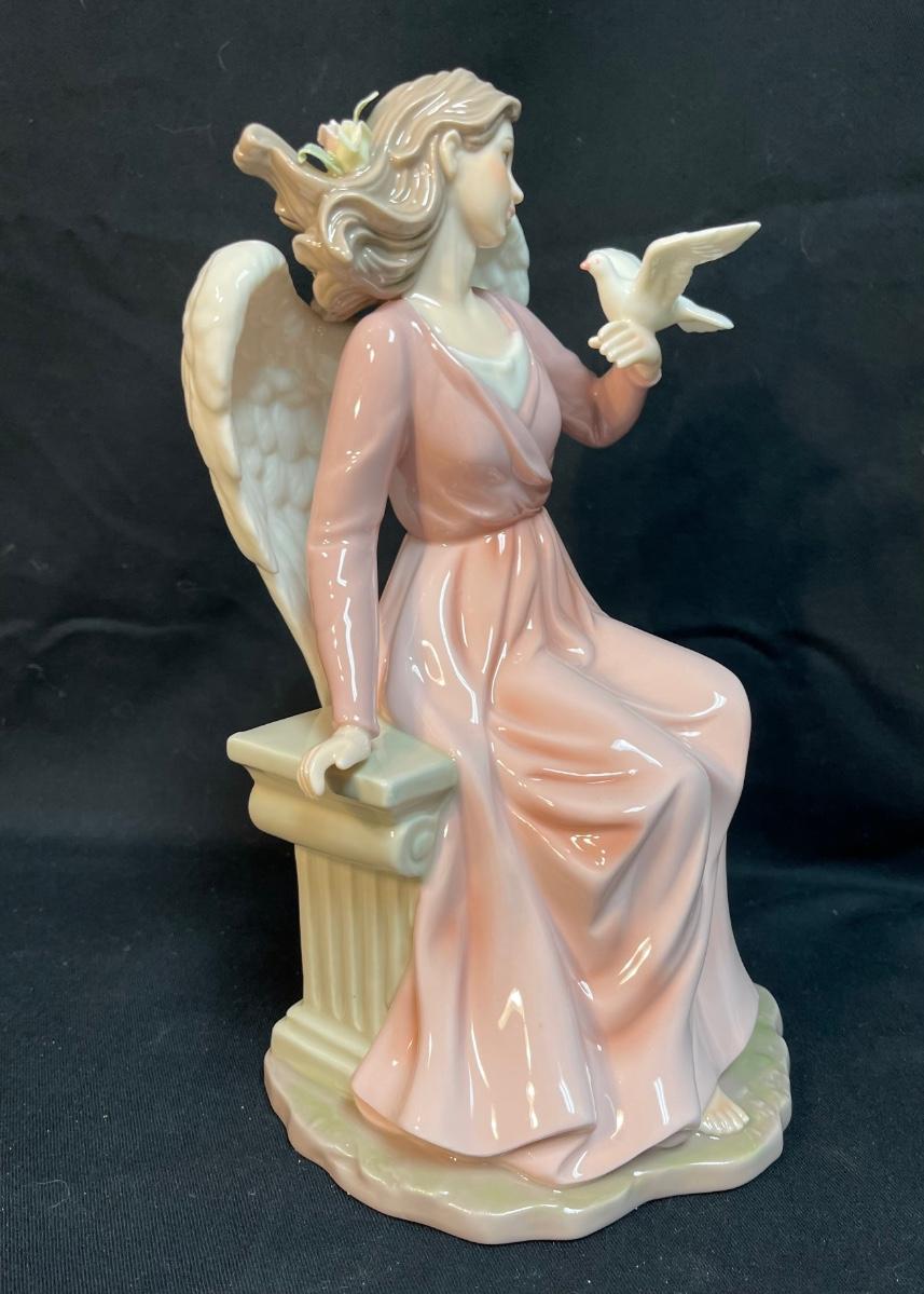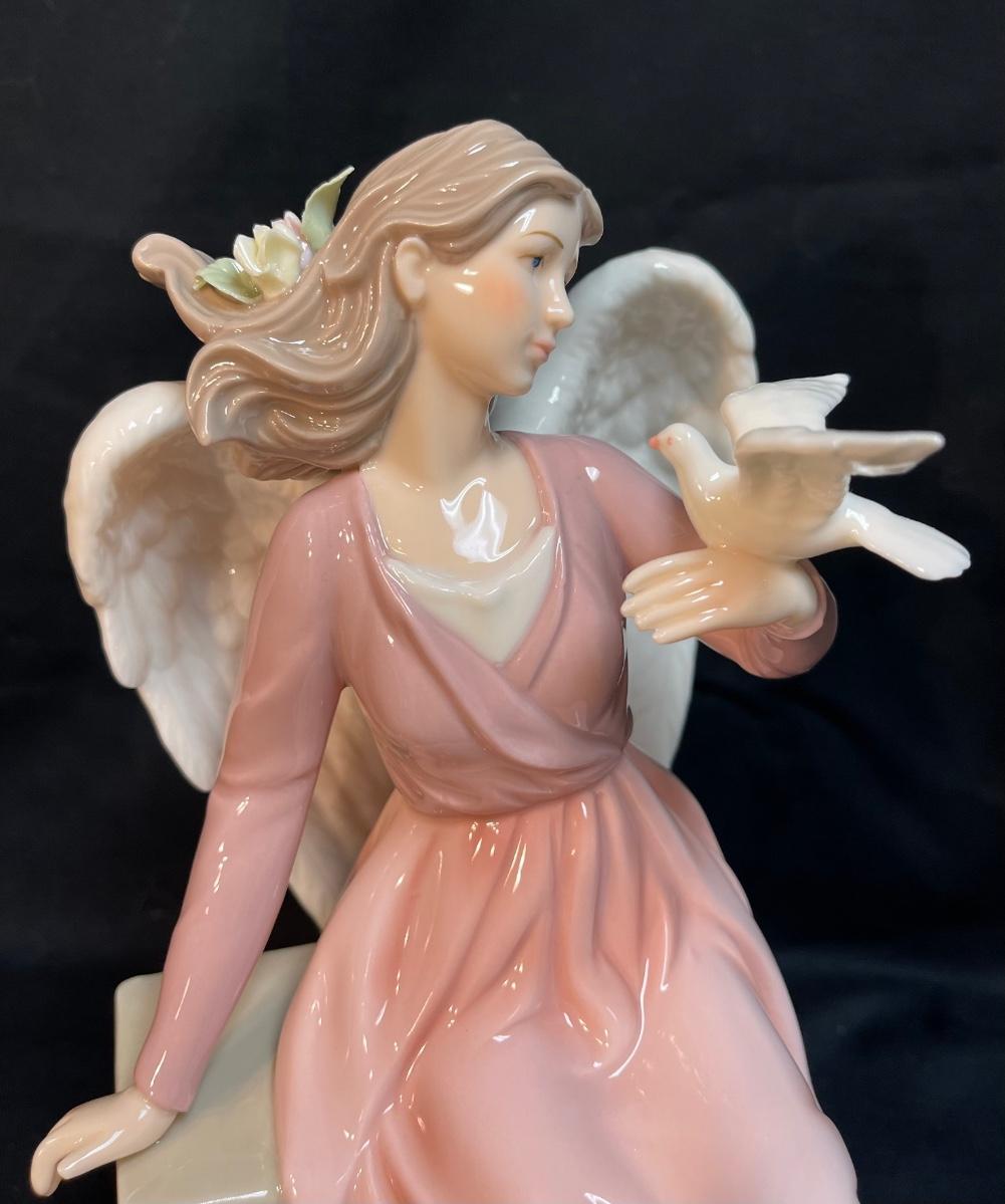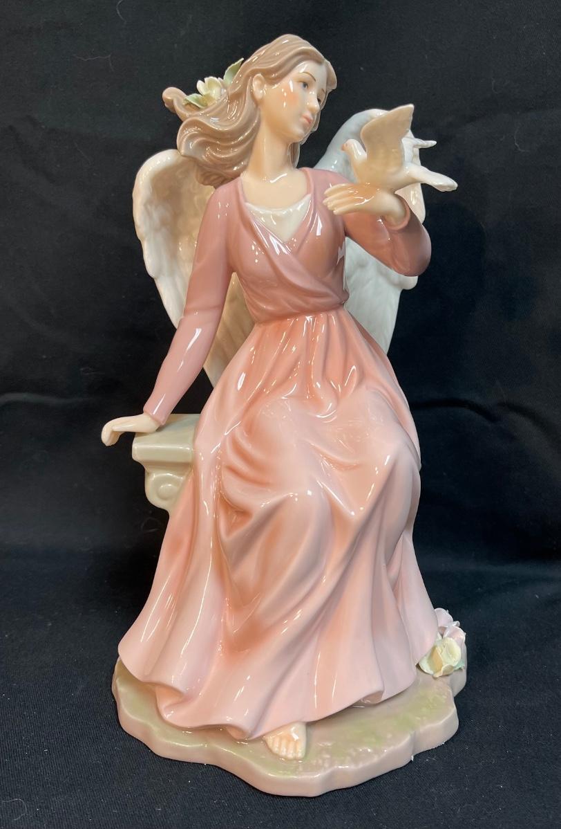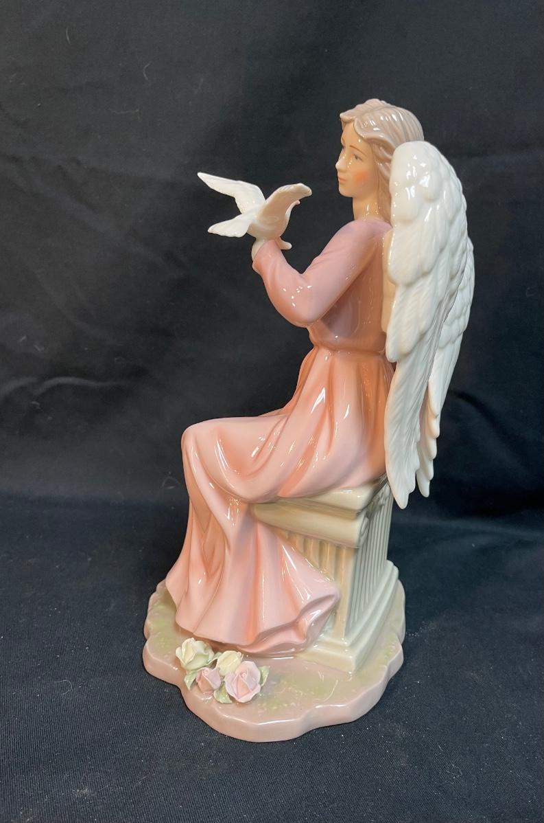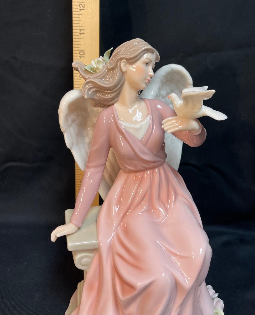 Grandeur Noel Large Porcelain Figurine, Angel in Pink Gown Holding Dove