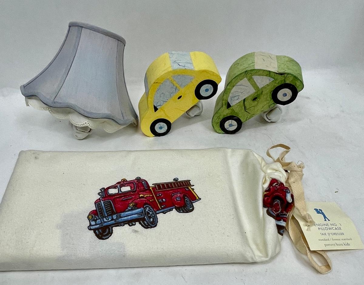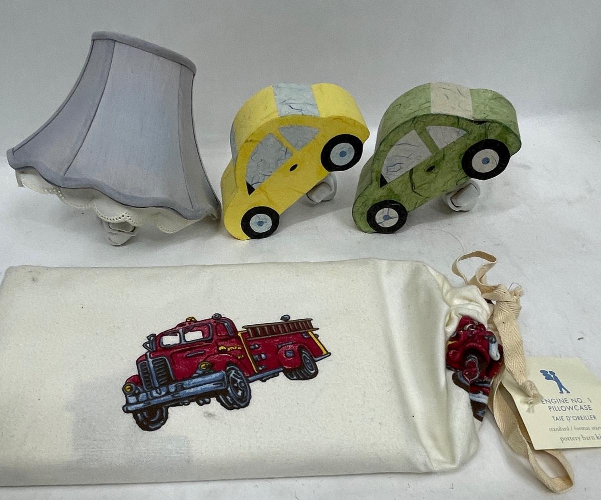 Red Fire Engine No 1 Pillowcase plus 3 plug in cars & lampshade nightlights