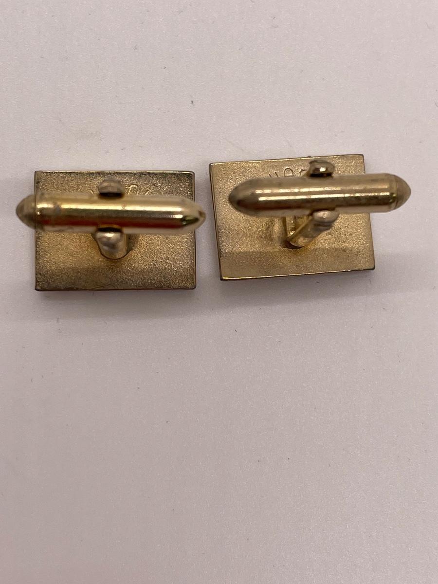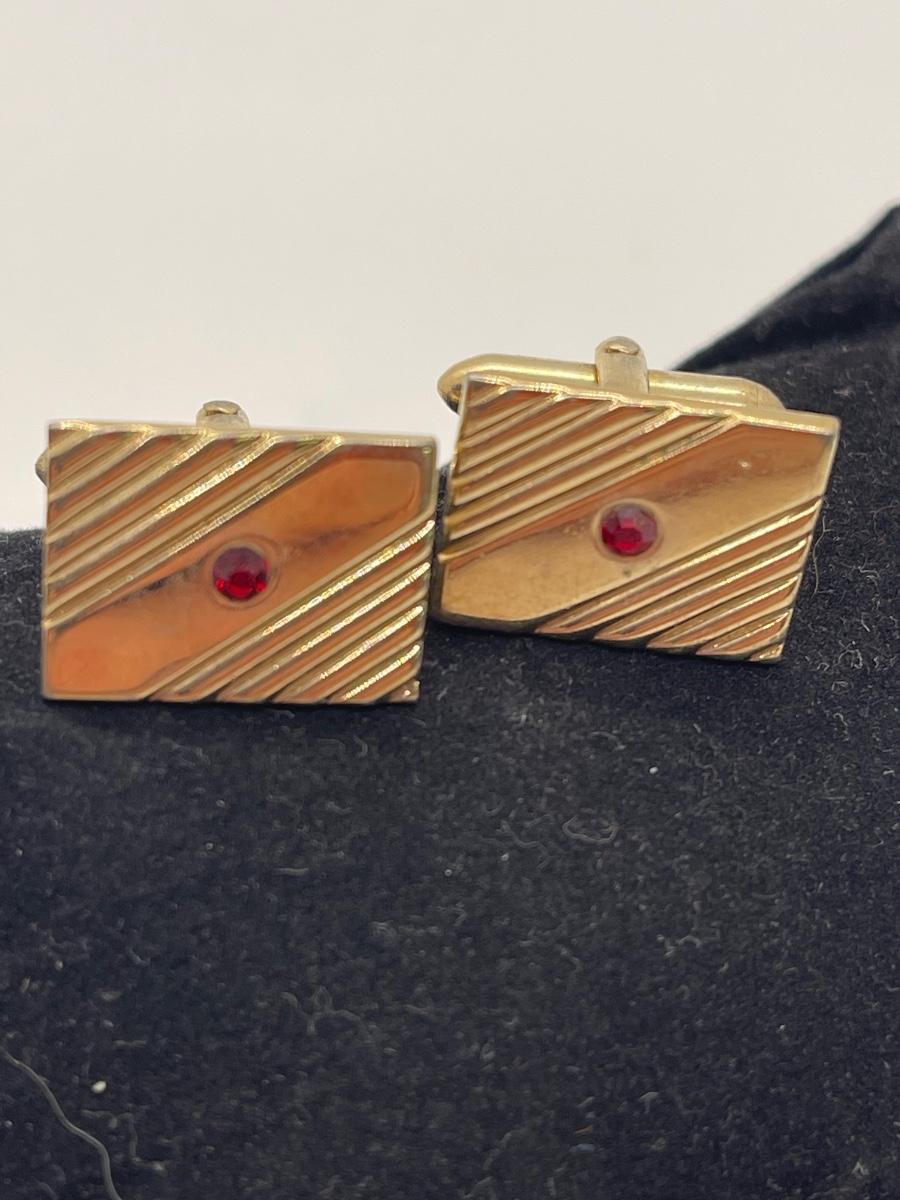Vintage Retro Gold Tone Cuff Links with Red Rhinestone Center