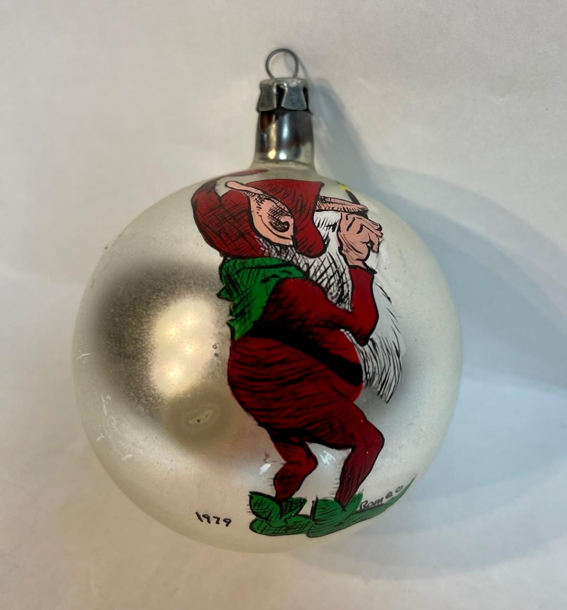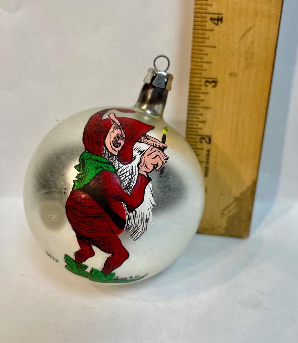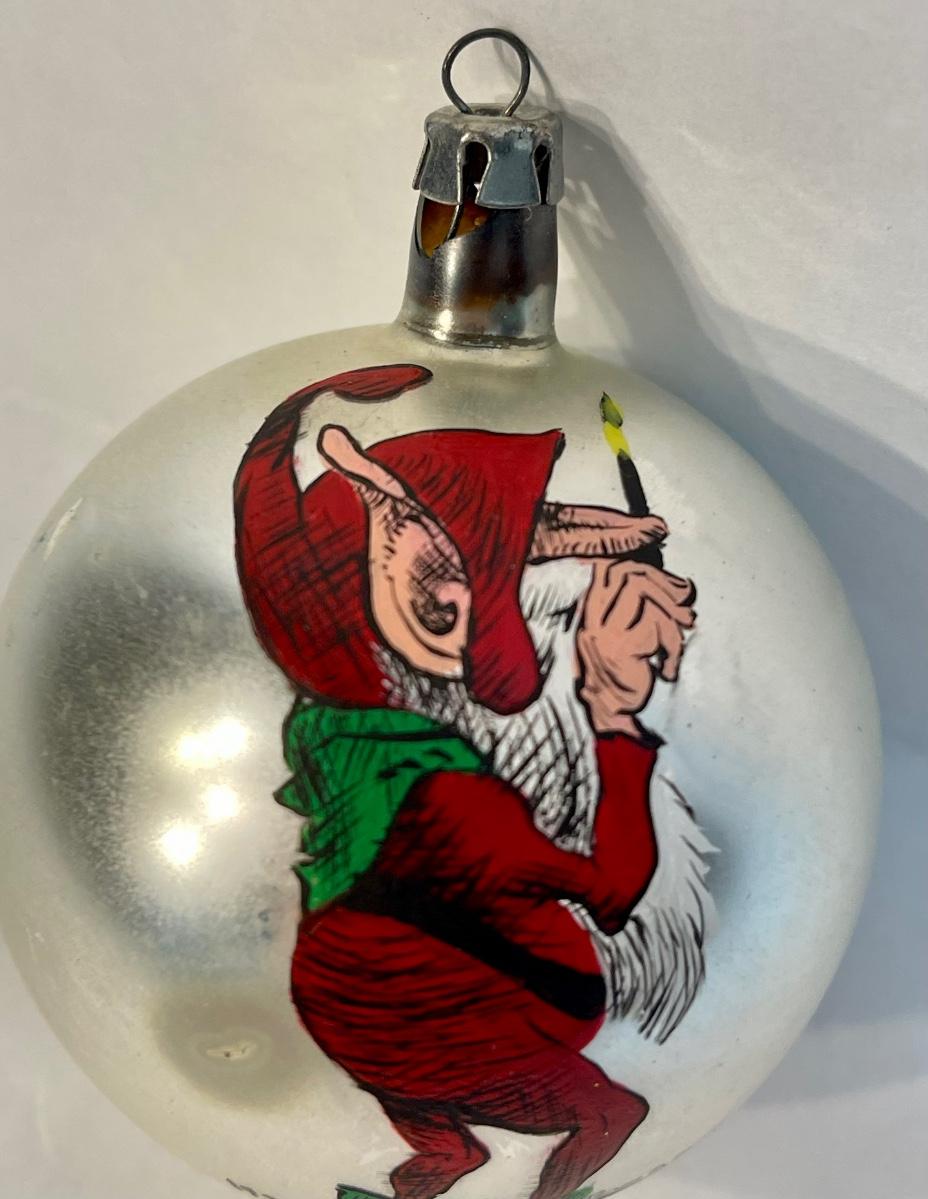 Grumpy Looking Christmas Elf painted on Mercury Glass Ornament
