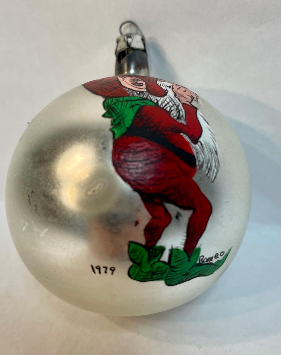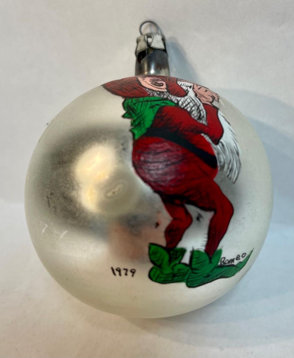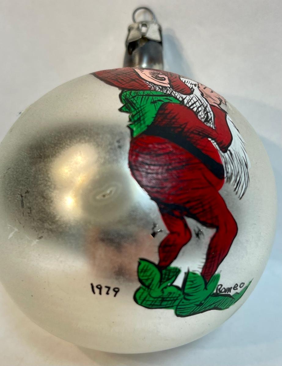 Grumpy Looking Christmas Elf painted on Mercury Glass Ornament