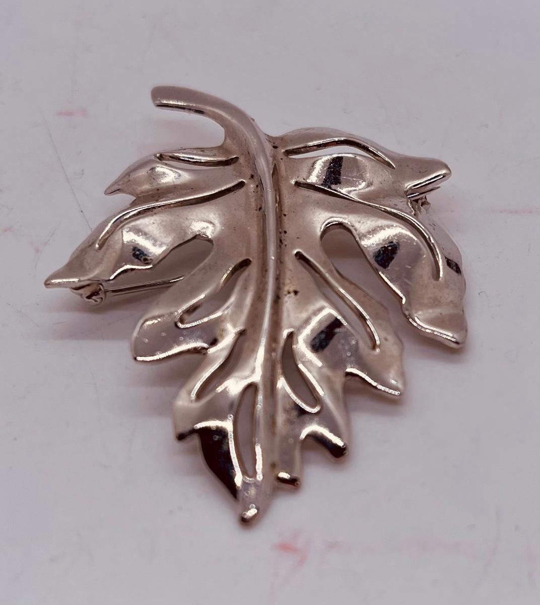 Silver tone Fall Leaf Brooch or Pin