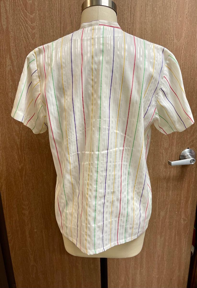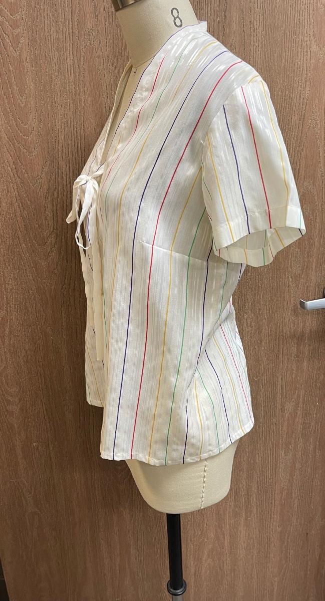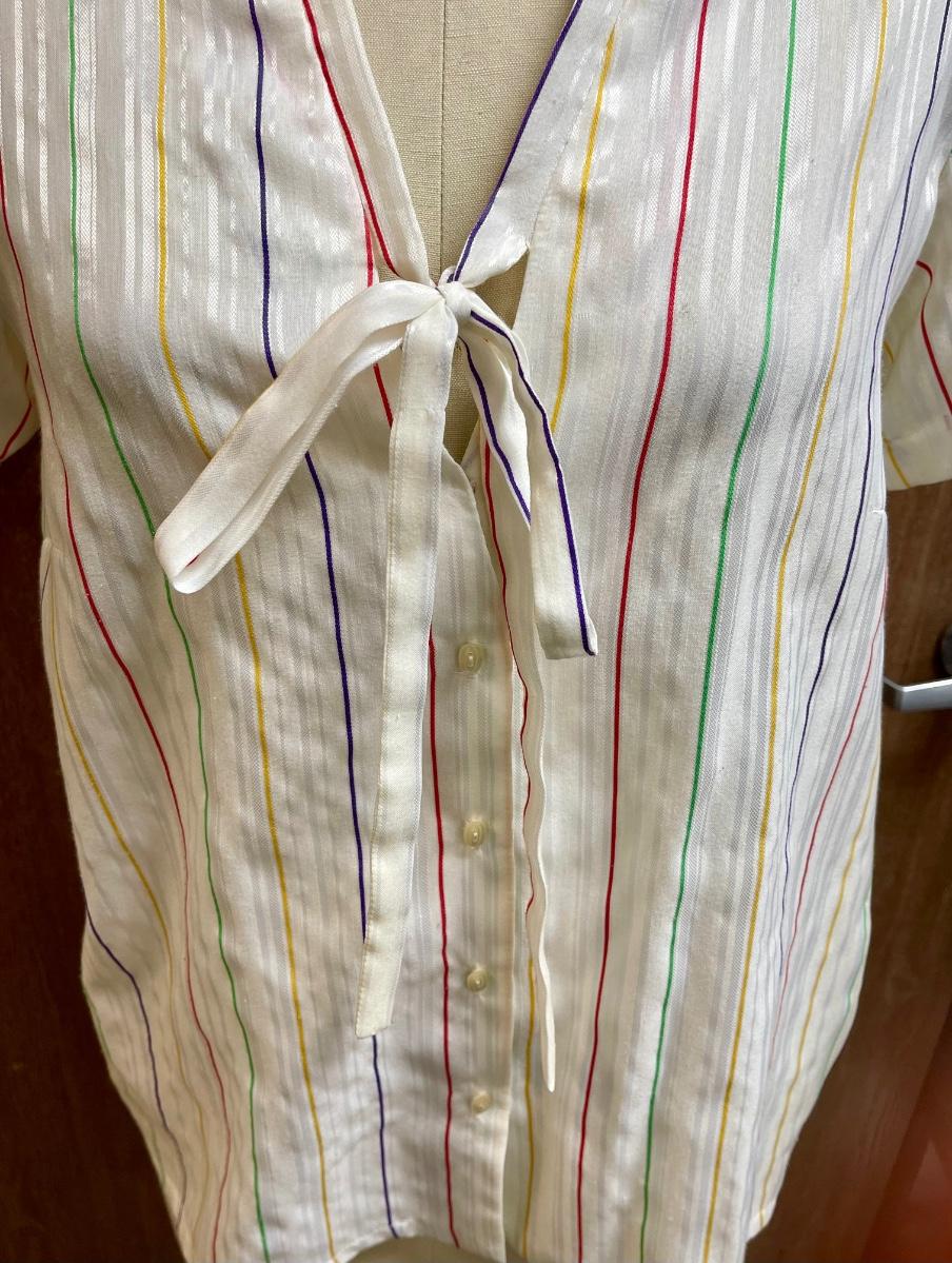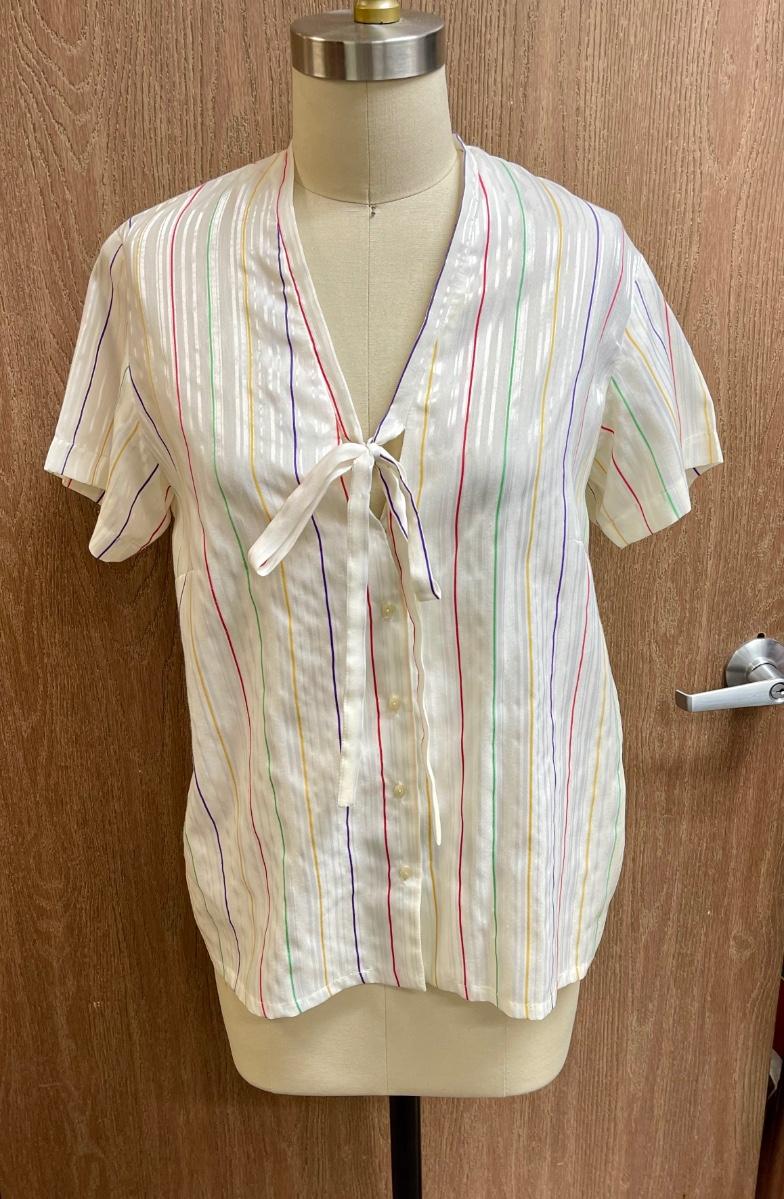 Homemade Handsewn Vertical Stripe Blouse with tie, approx size 8