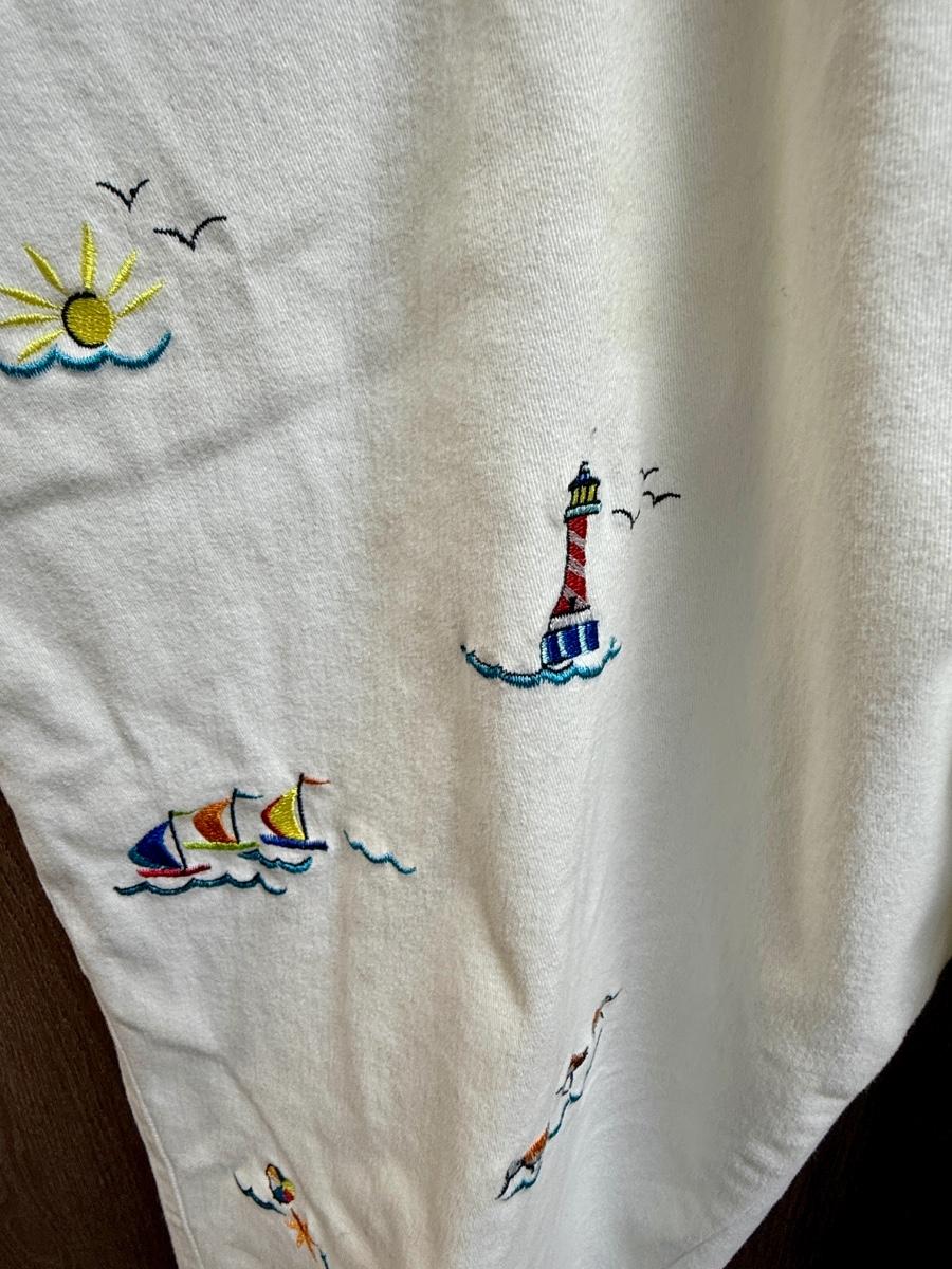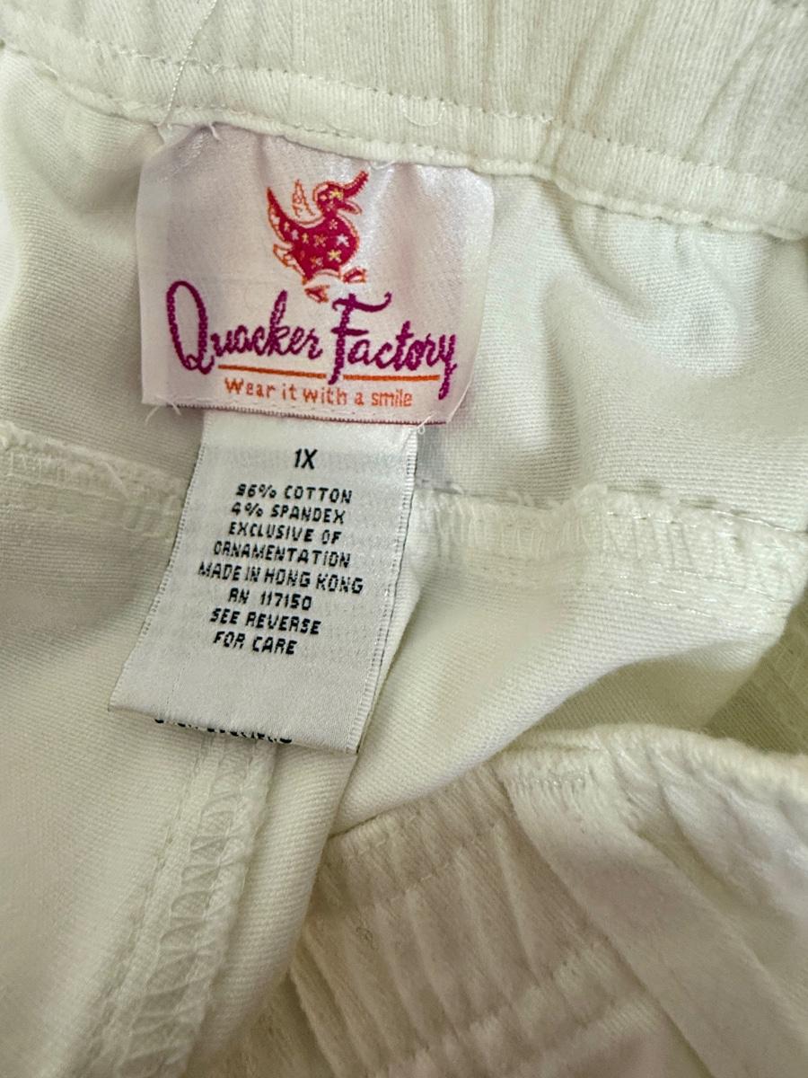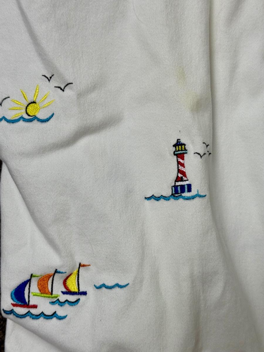 Quacker Factory size 1X Embroidered Sailboats on White Jeans Capri Style