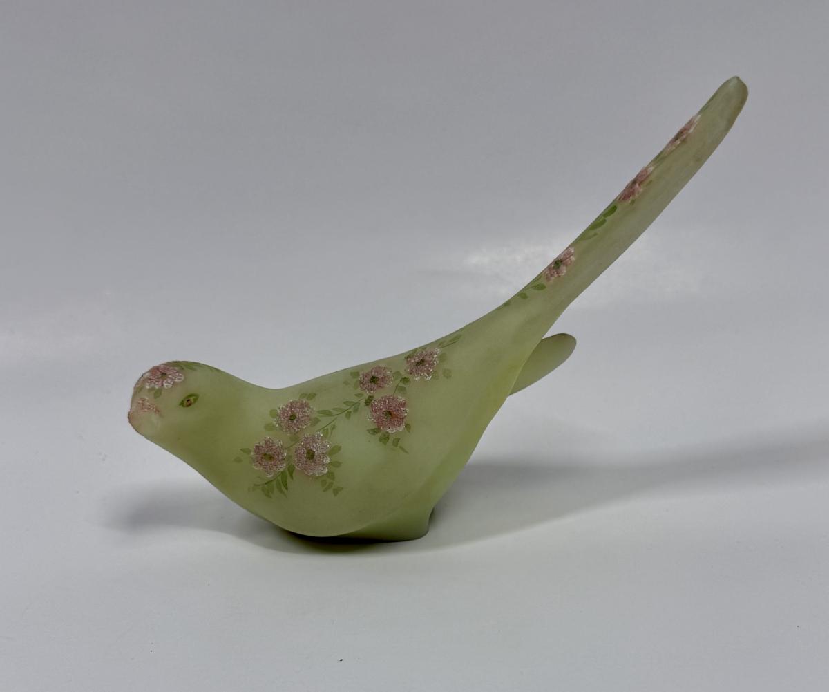 Vintage Fenton Satin Glass Bird Figurine hand painted with chipped beak