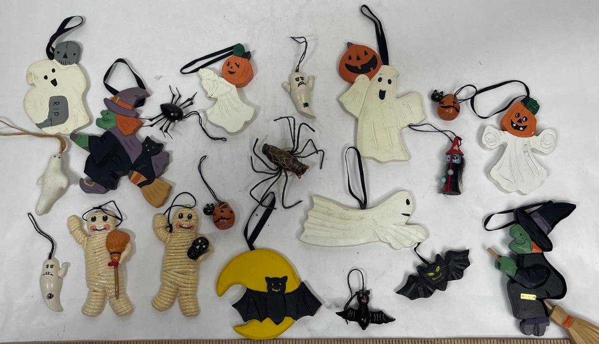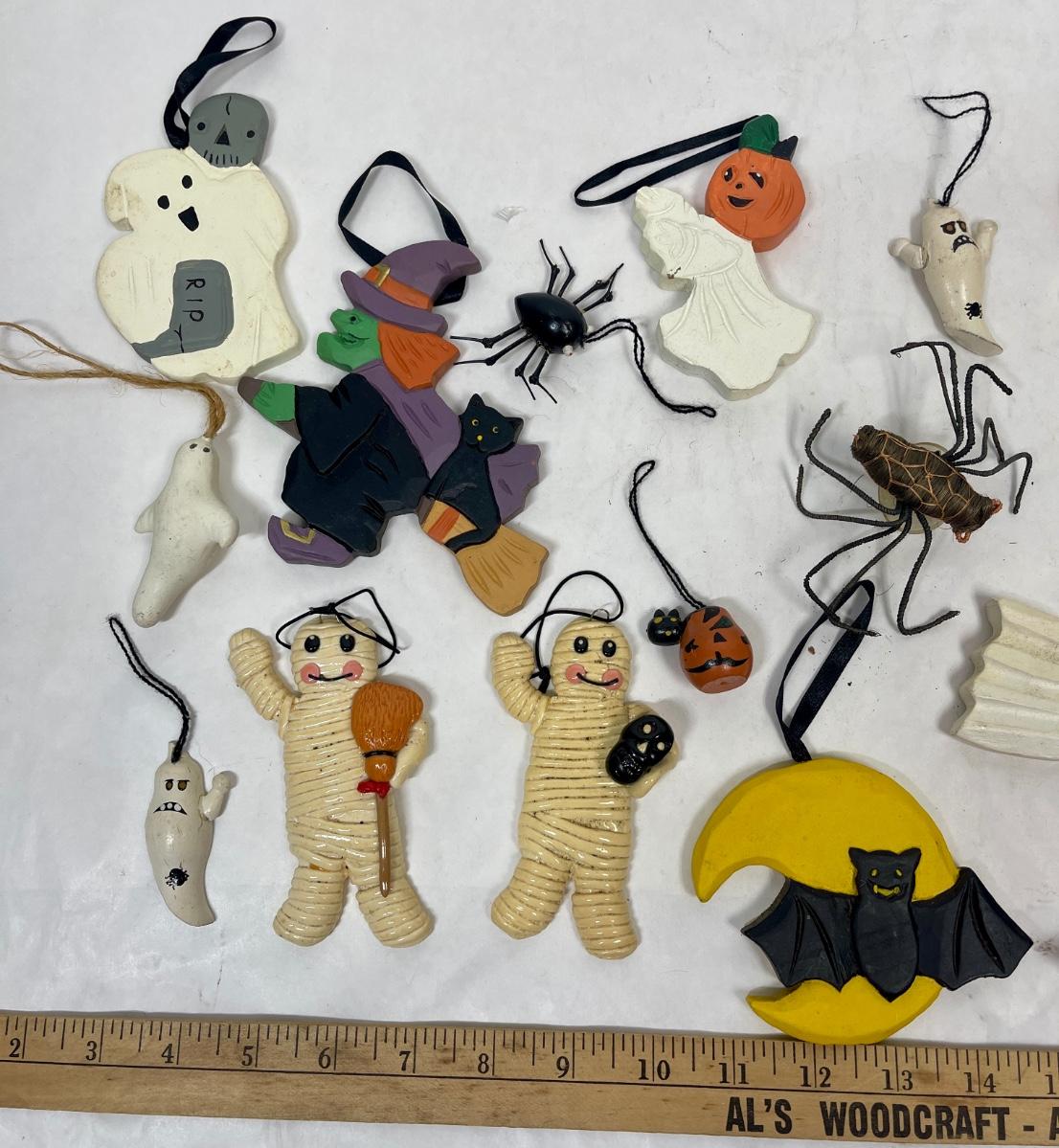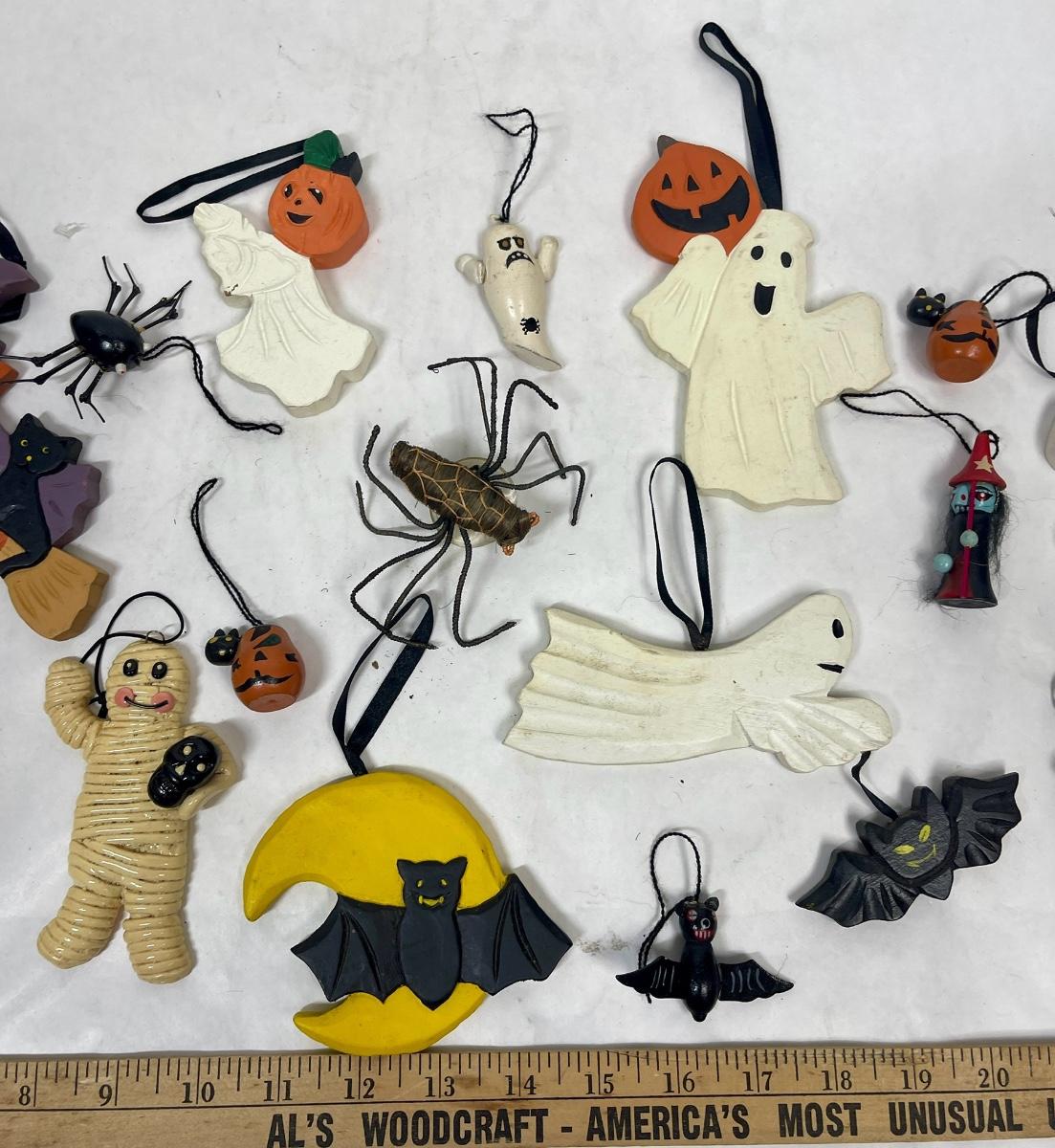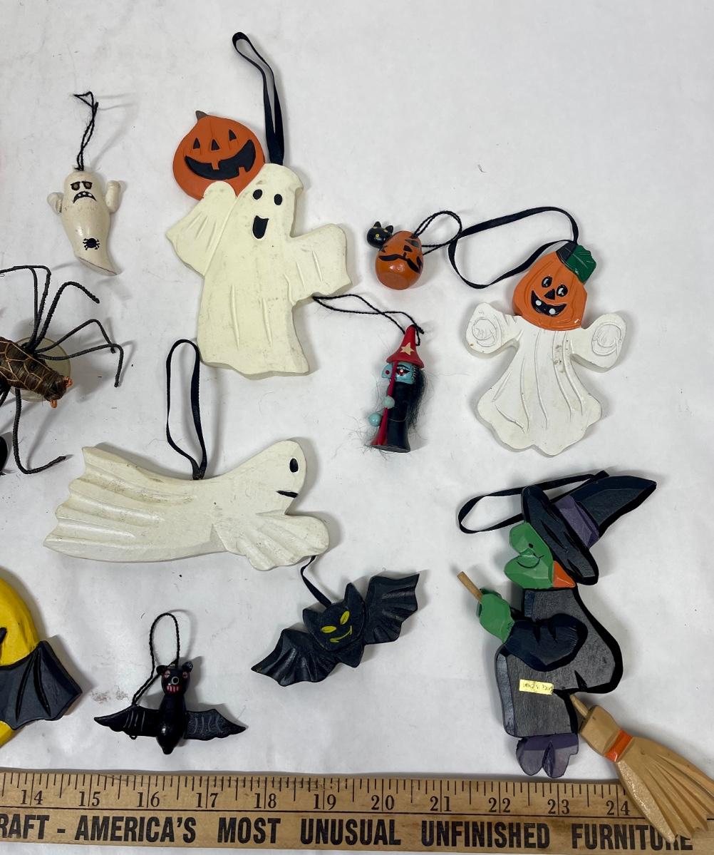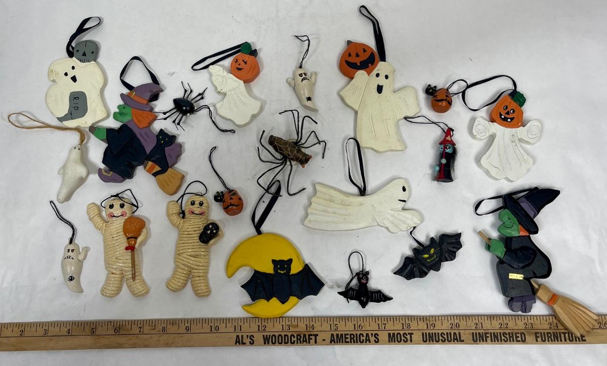 Vintage Lot of wooden Halloween Ornament Decorations - Ghosts, Bats, Spiders, etc