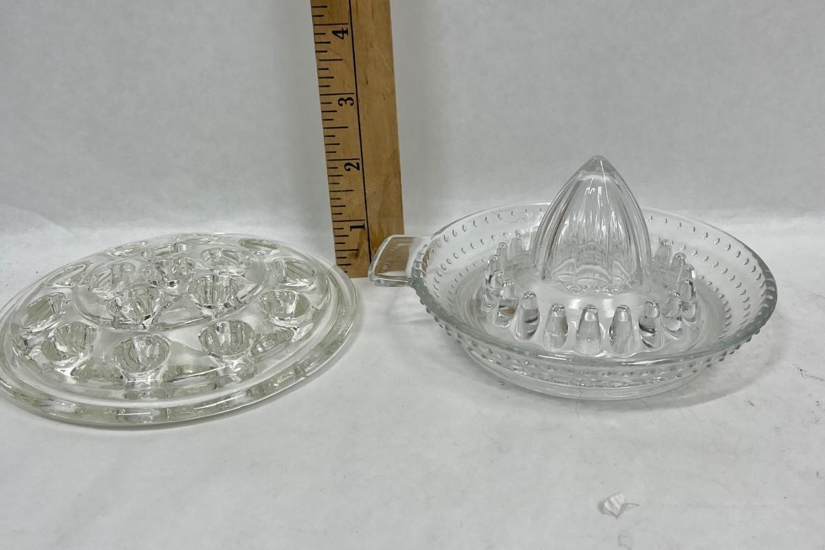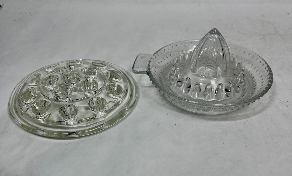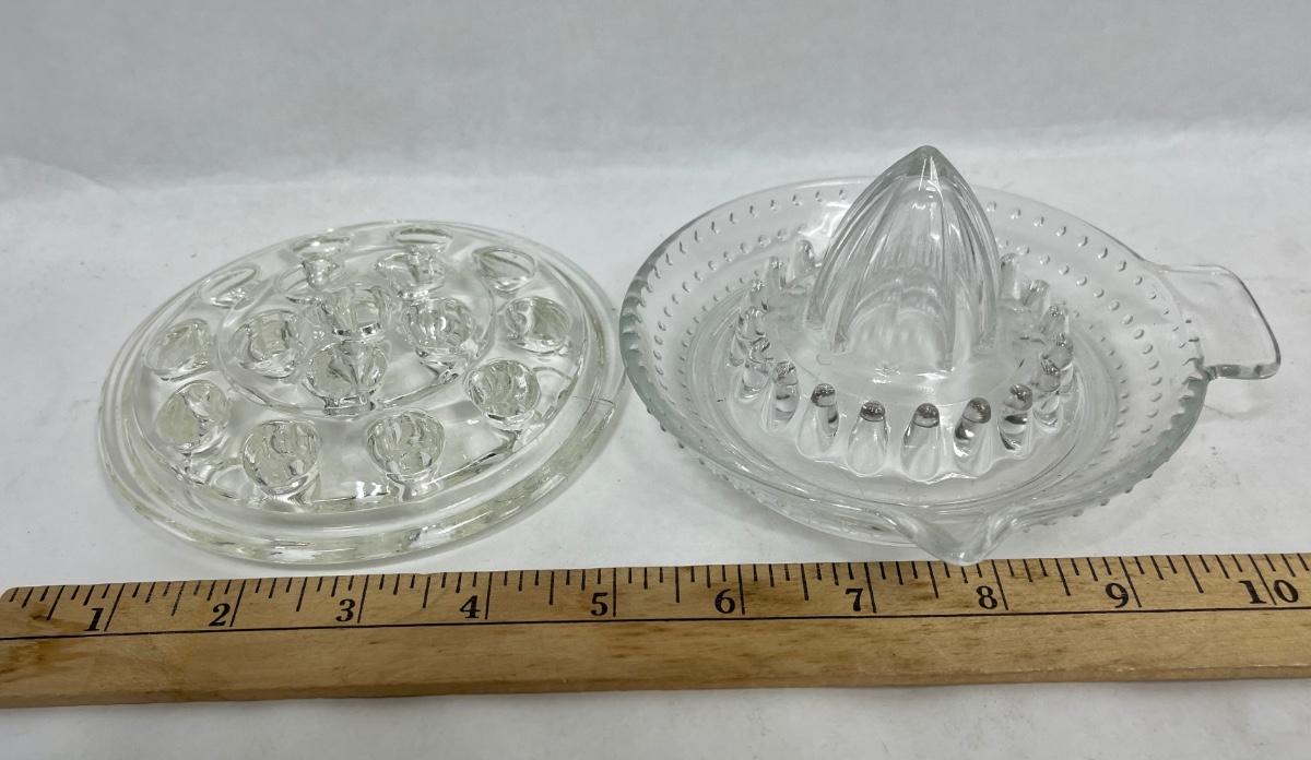 Vintage Glass Lemon Juicer & Vintage Glass Flower Frog with 16 holes